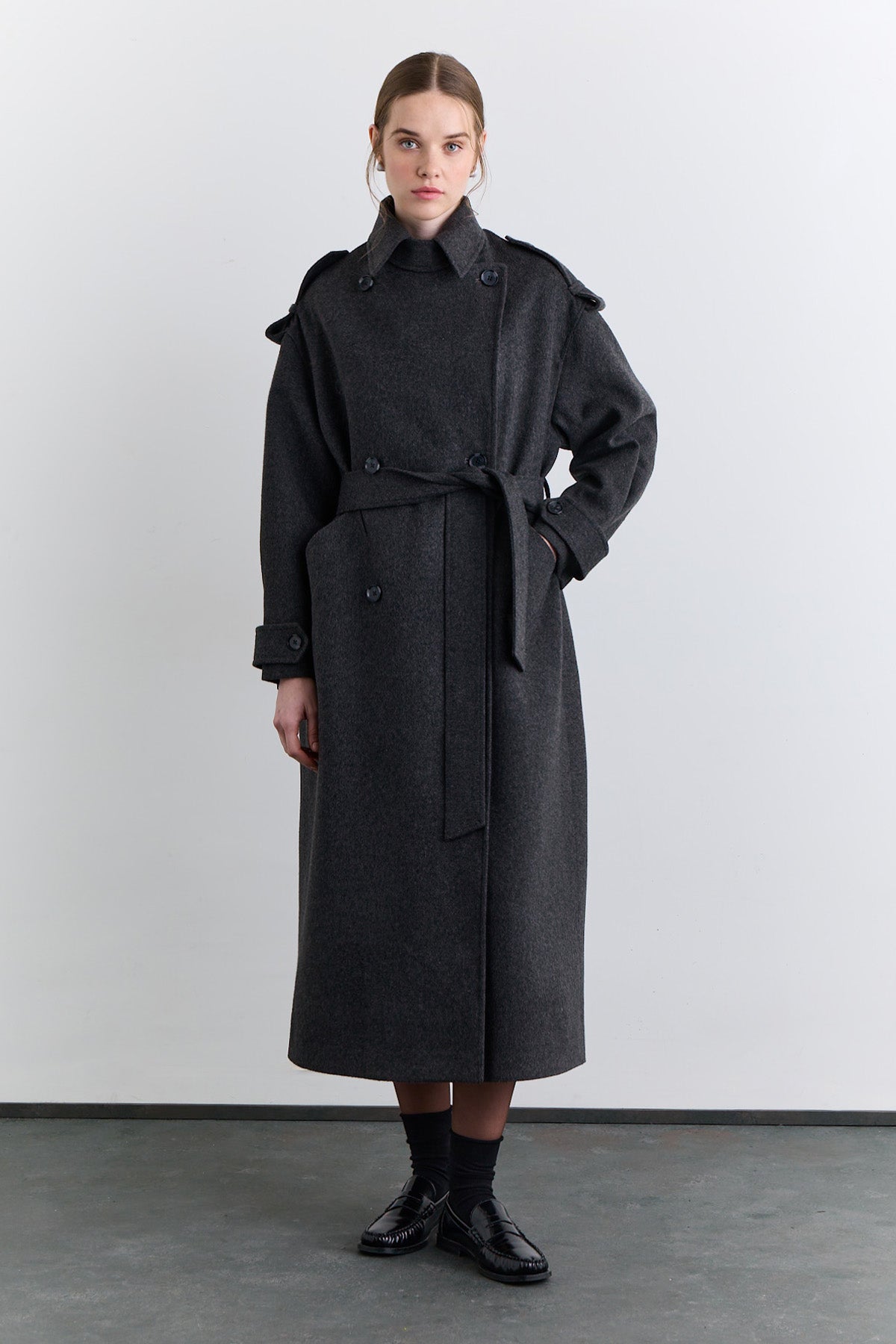 Double Breasted Wide Collar Coat Anthracite