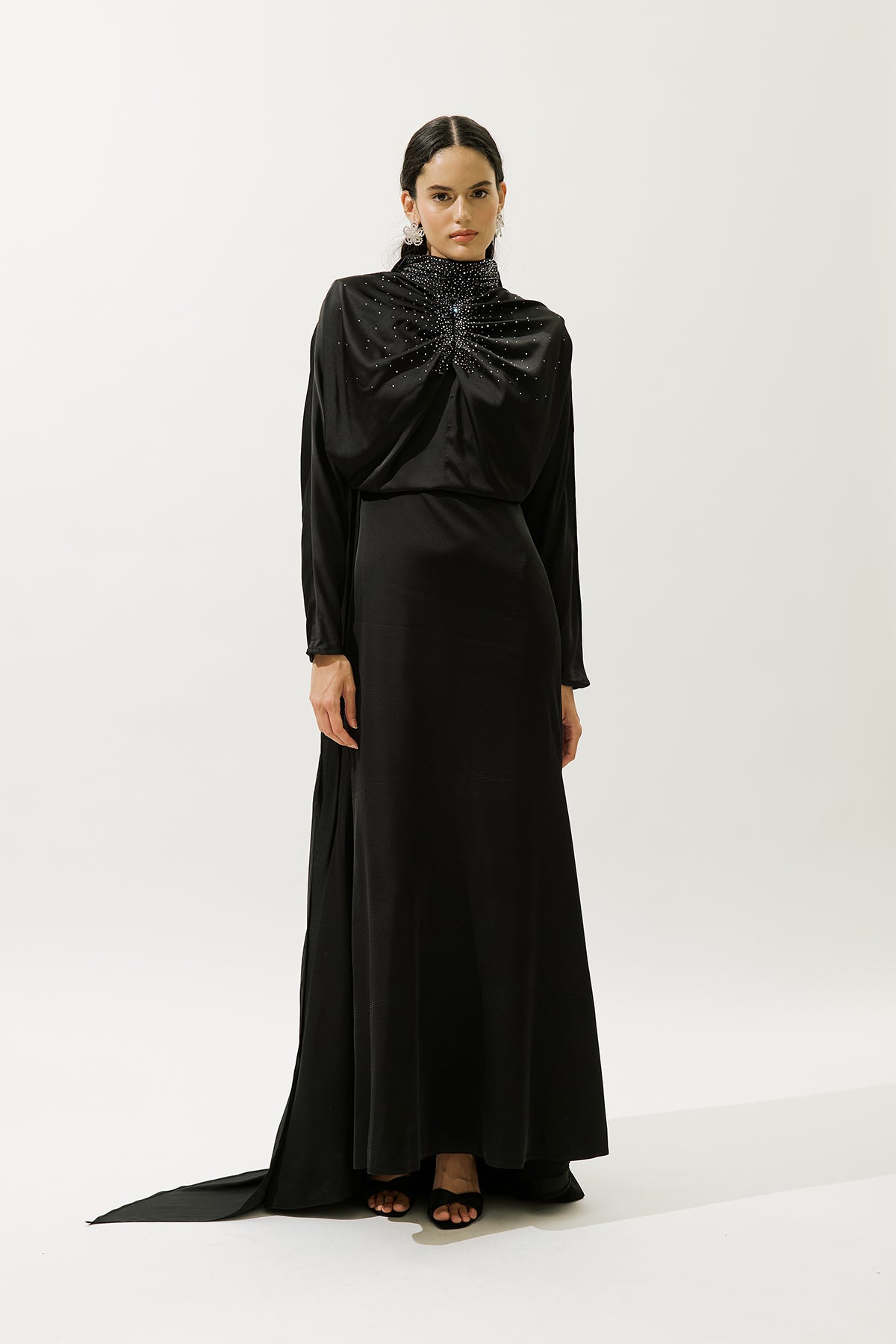 Beden 36: Ön Uzunluk: 151 cm, Arka Uzunluk: 165 cm, Bel: 35 cm, Etek: 135 cm, Kol Uzunluğu: 76 cm, Göğüs: 36 cm