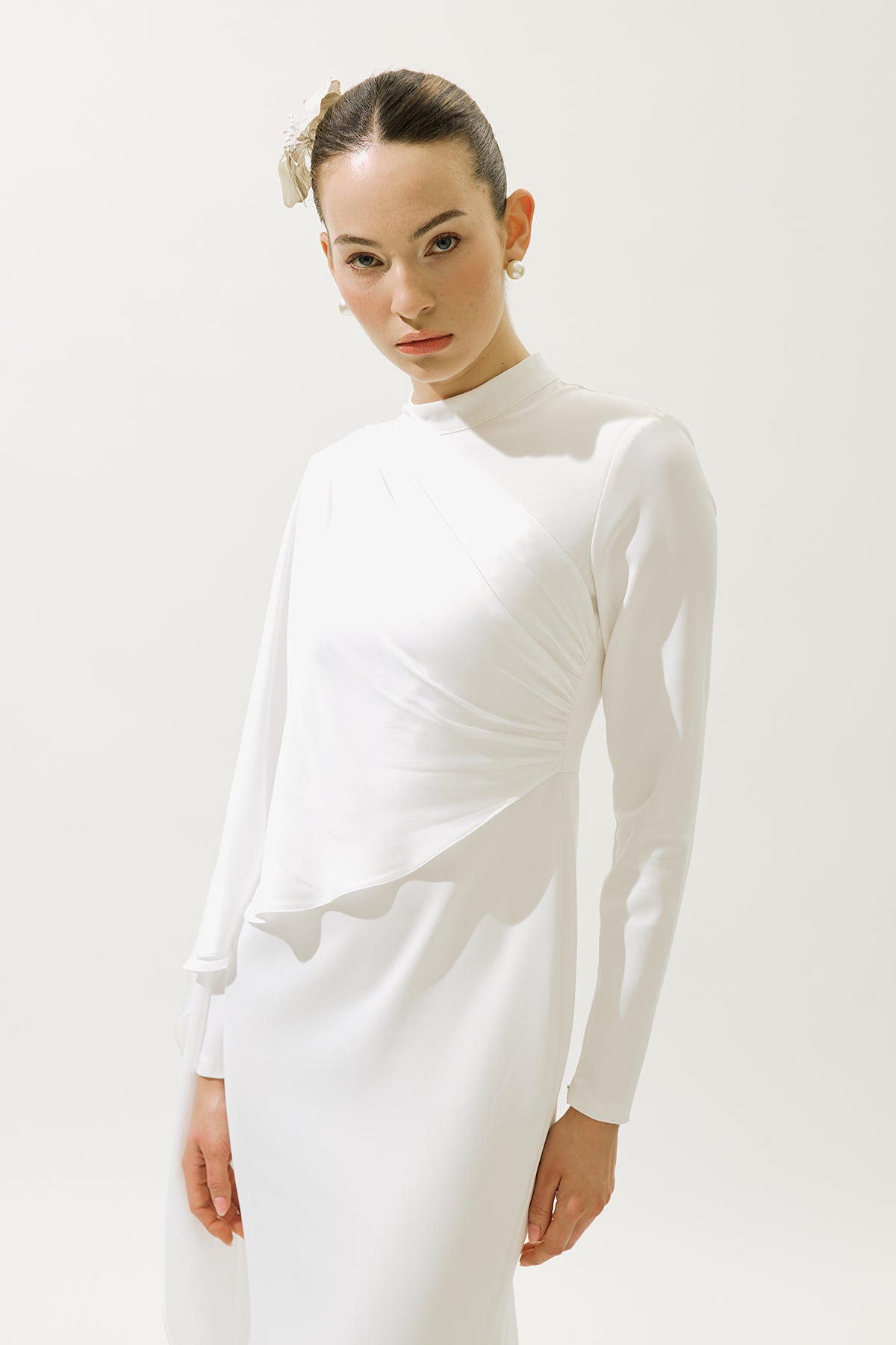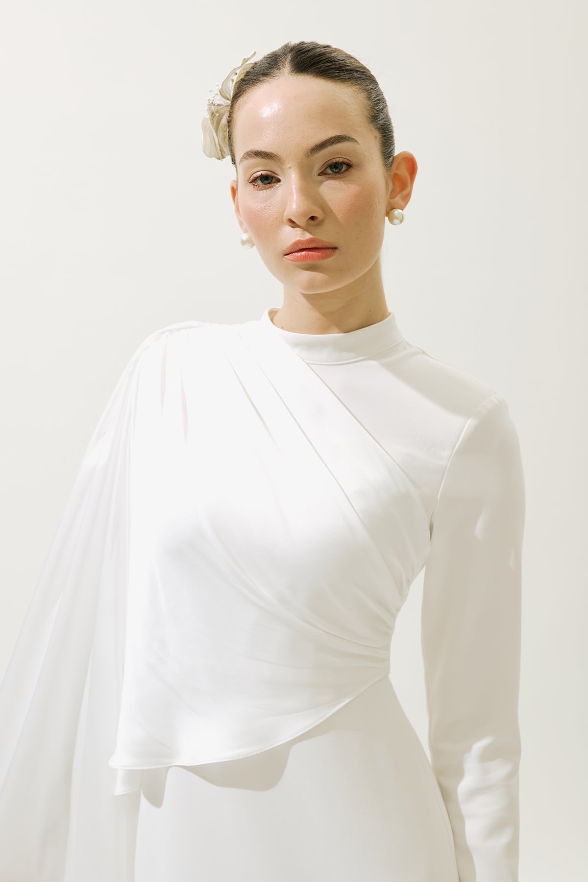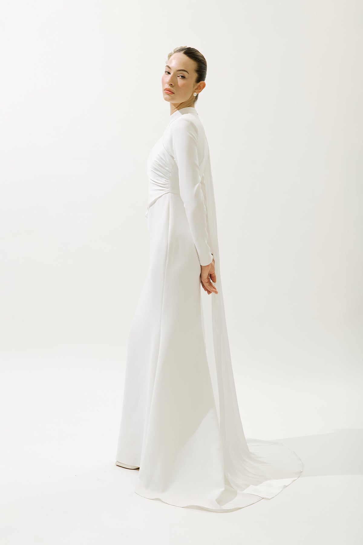 Lana Cape Abiye Elbise Ekru