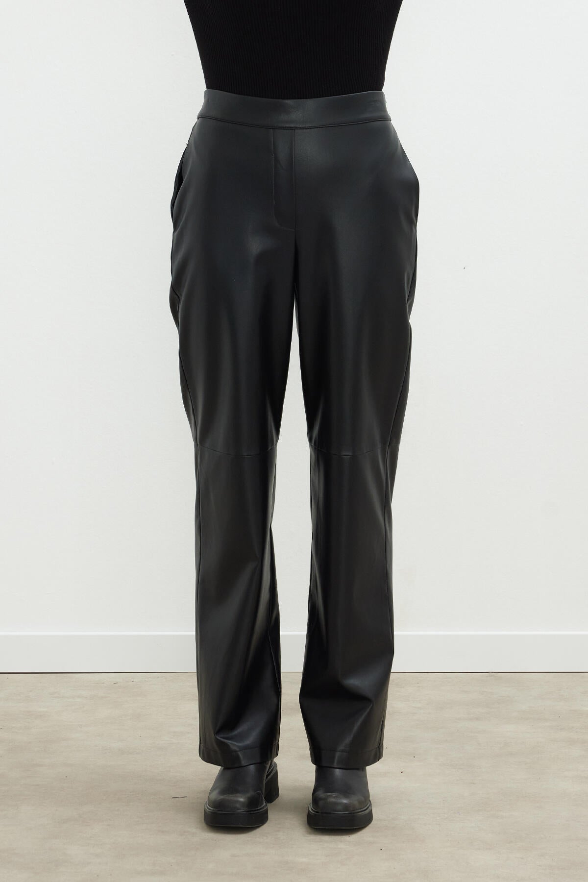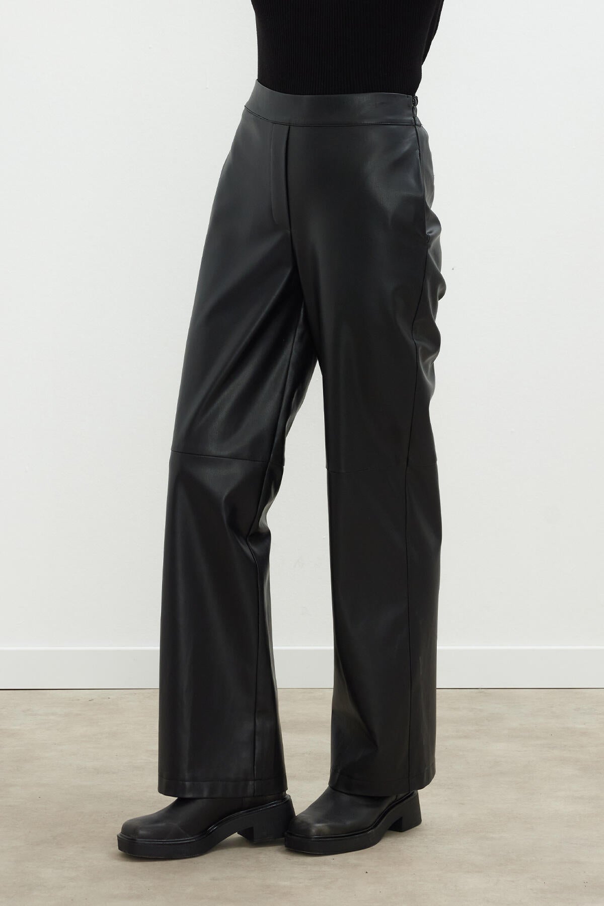 Suni Deri Palazzo Pantolon Siyah
