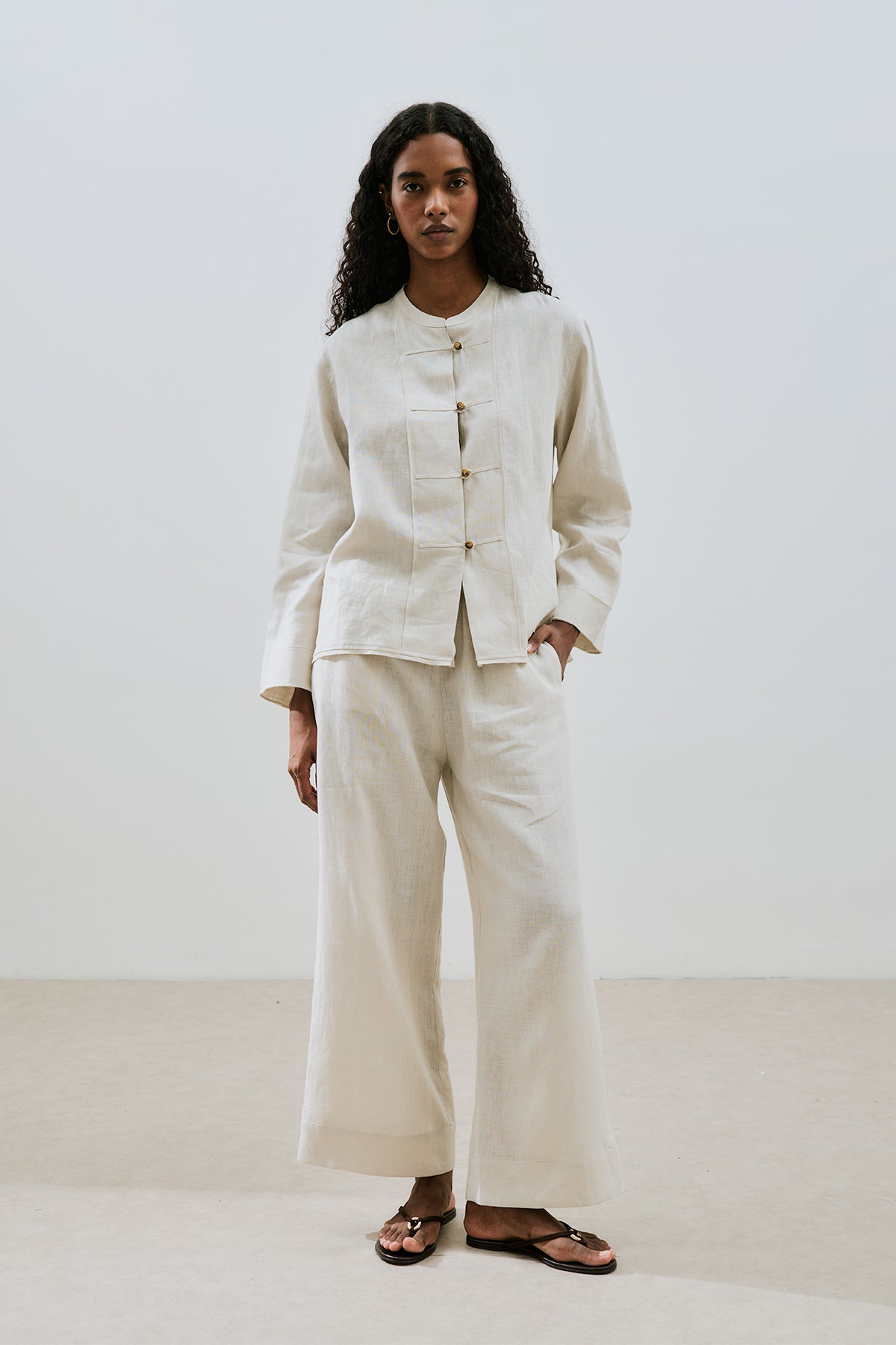 KETEN ÖNDEN DÜĞMELİ GÖMLEK TAŞ