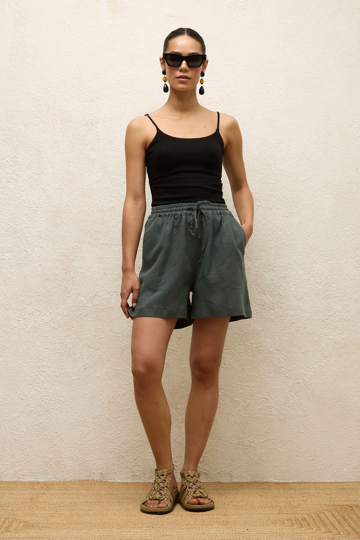 Keten Rahat Şort Yeşil