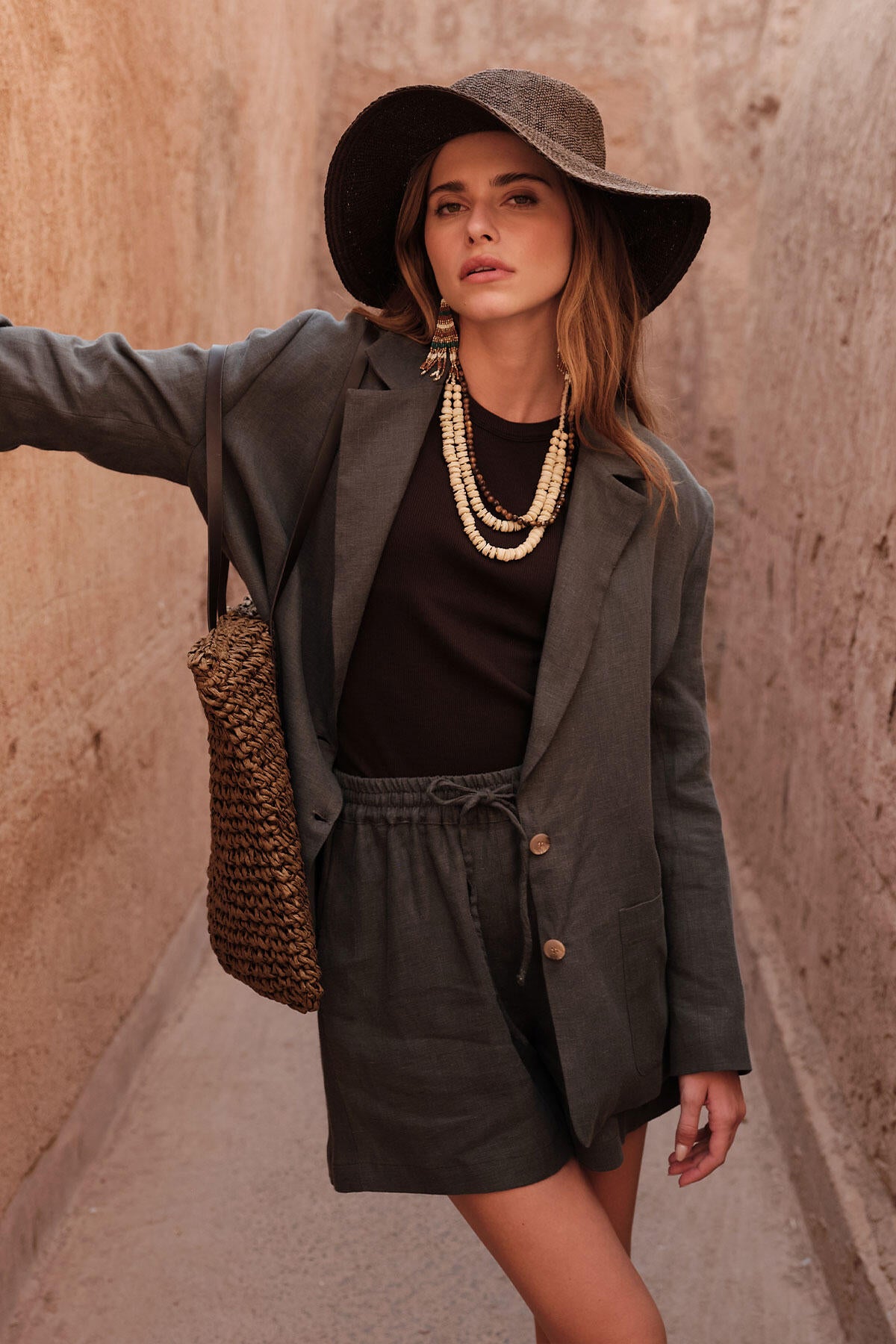 Bu yüksek belli, geniş paçalı şortlar yan ceplere sahiptir ve diz boyundadır. %100 keten kumaştan üretilmiştir.