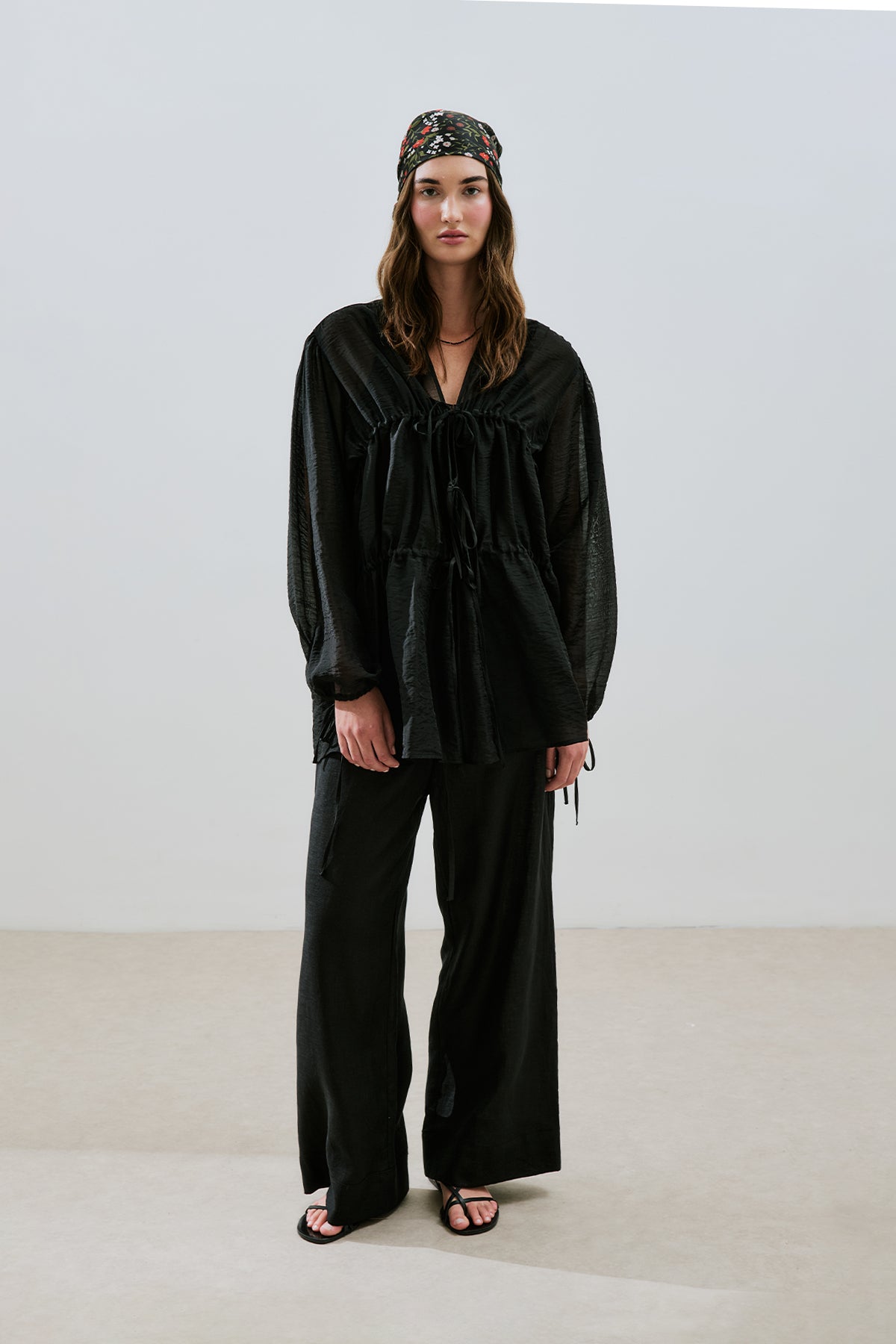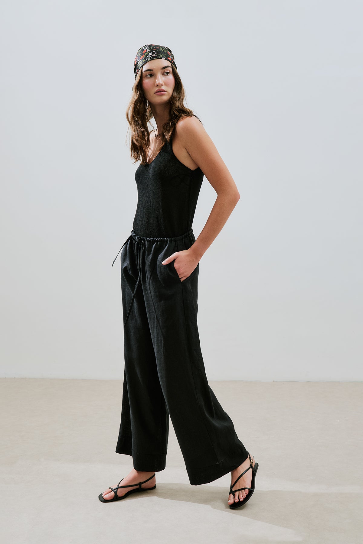 KETEN BAĞLAMALI PANTOLON SİYAH