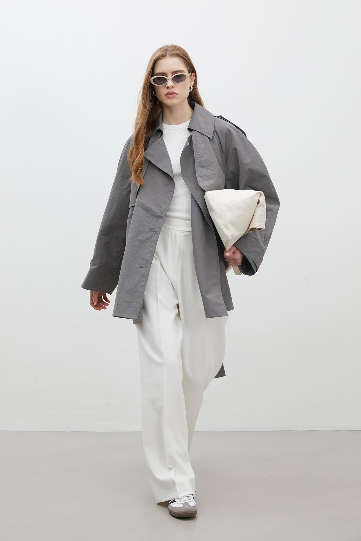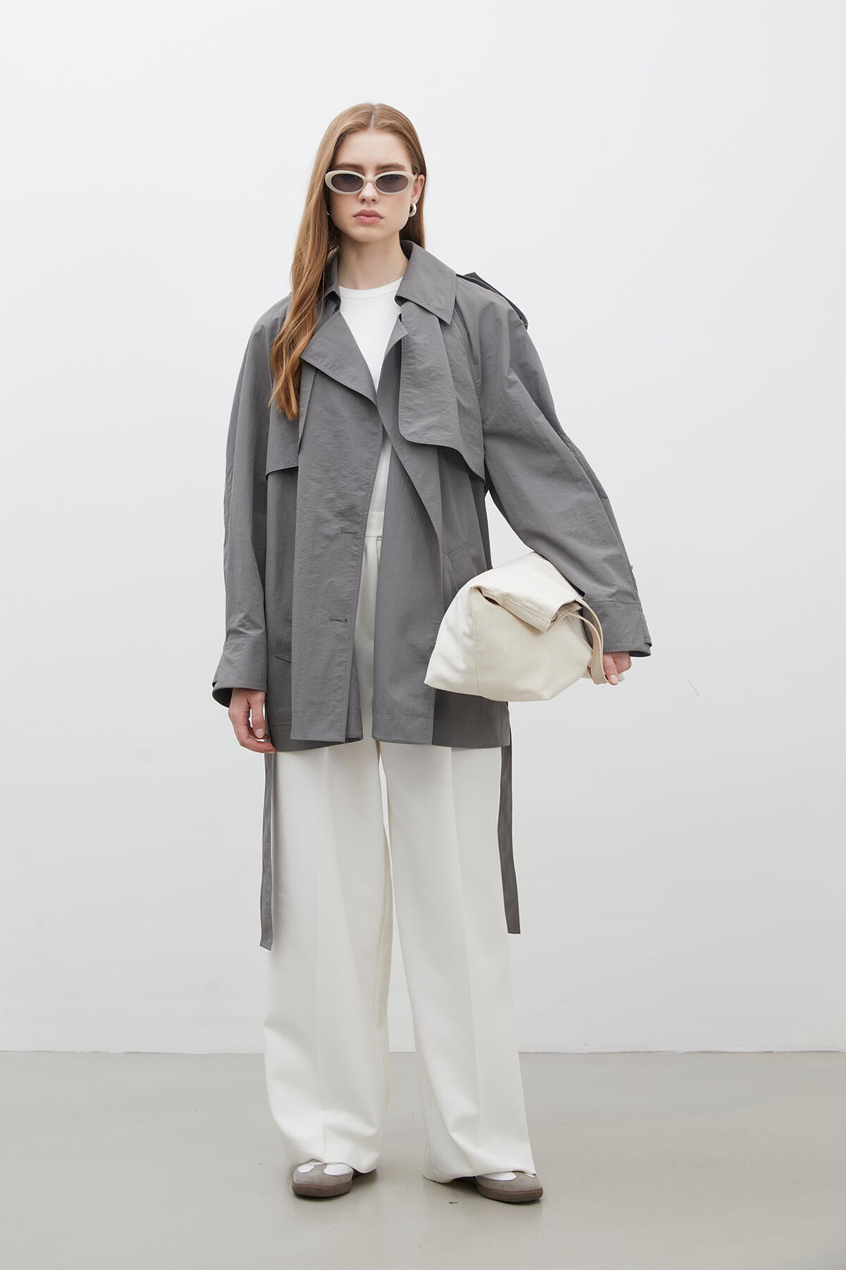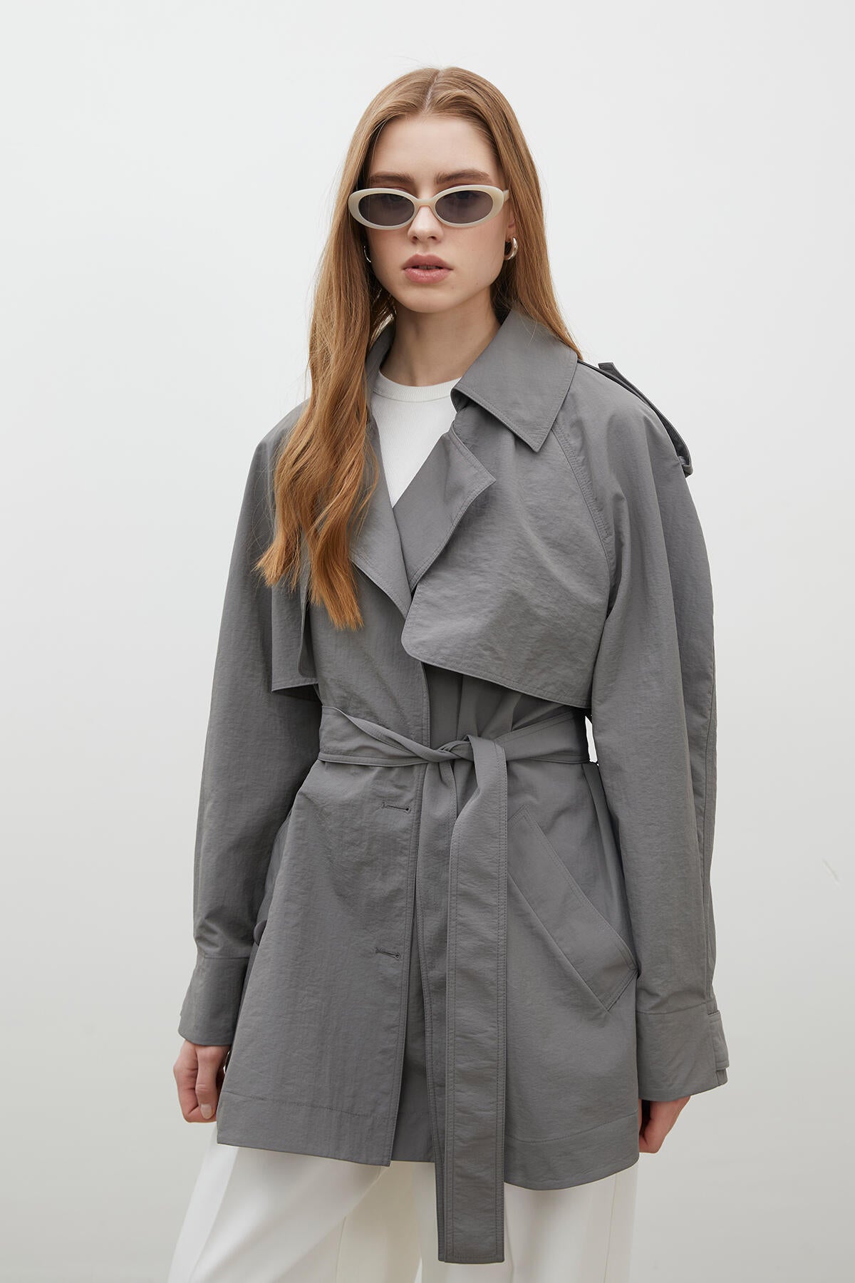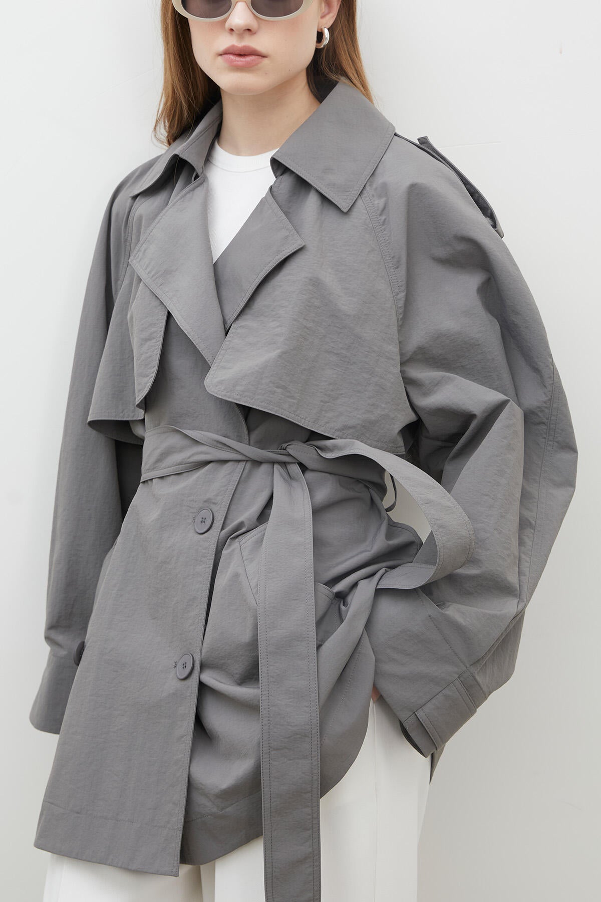 Lisbon Oversize Kısa Trençkot Gri