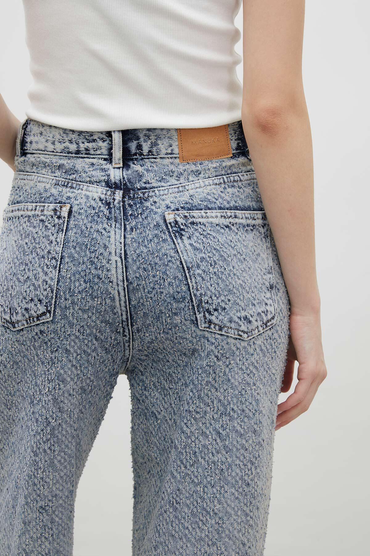 Bol Kesim Dokulu Kot Pantolon Mavi