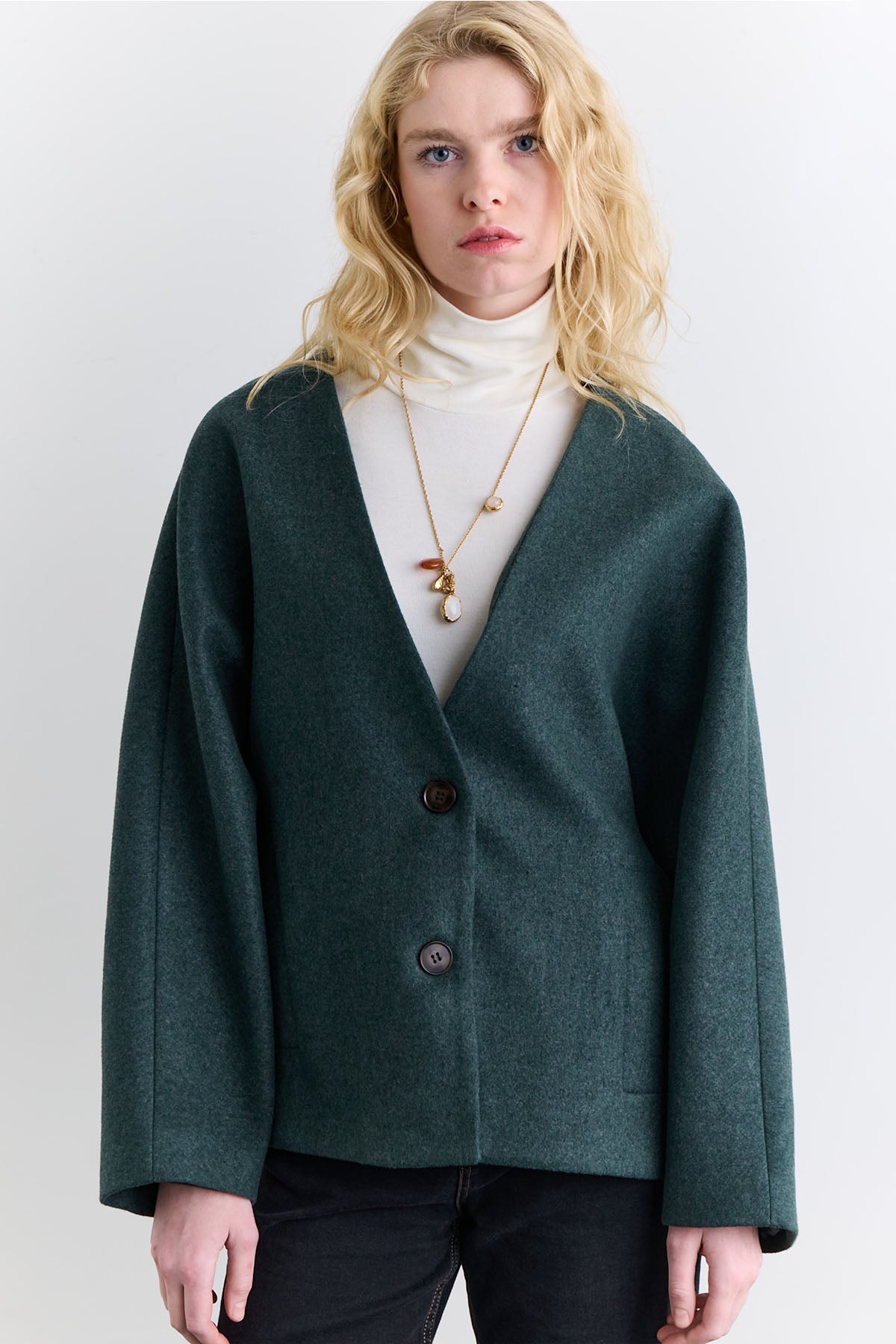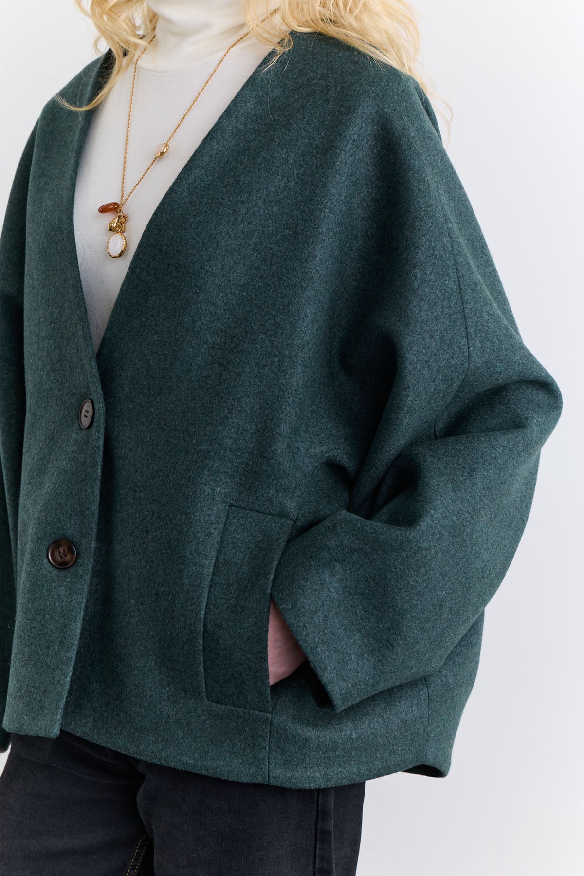 Yararsa kol, düğme kapamalı, astarlı, yanlardan cepli, kaşe kumaş.