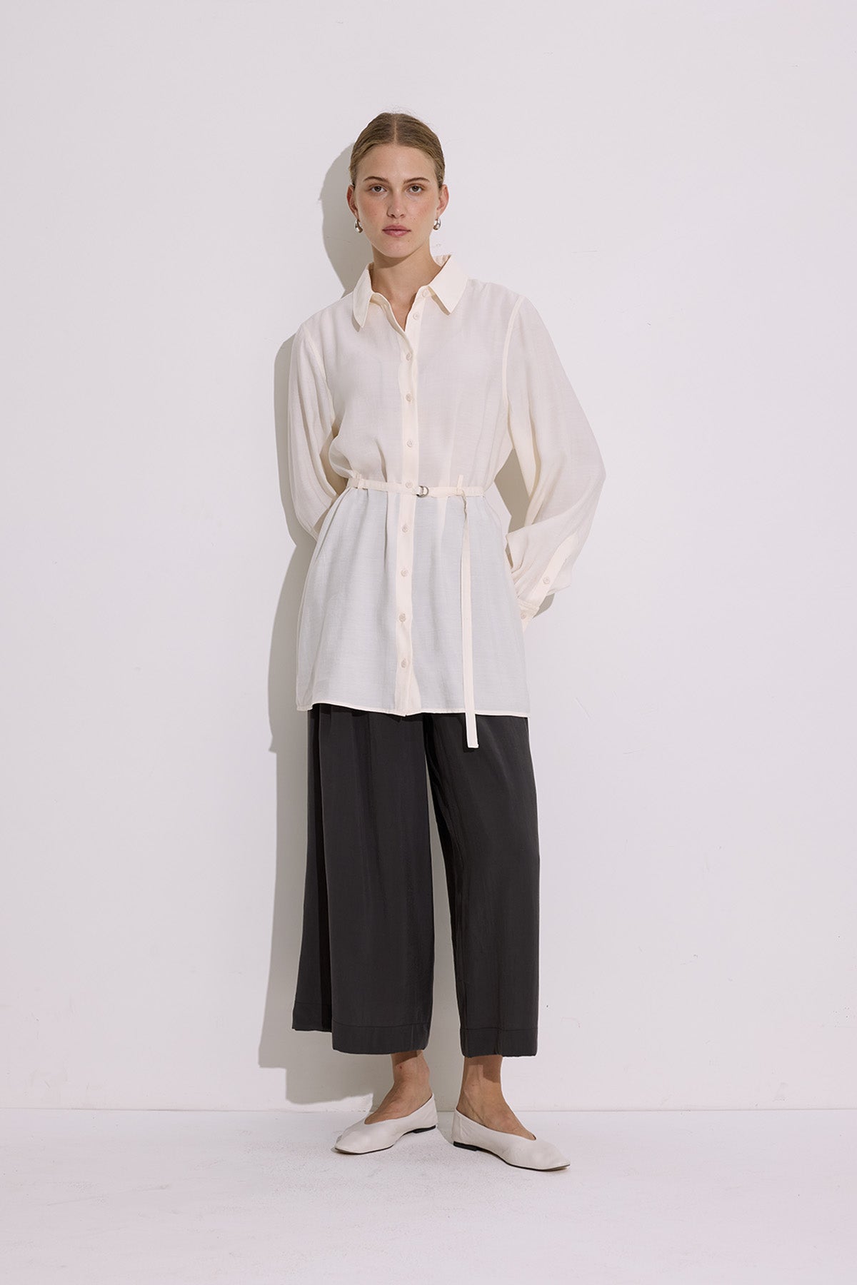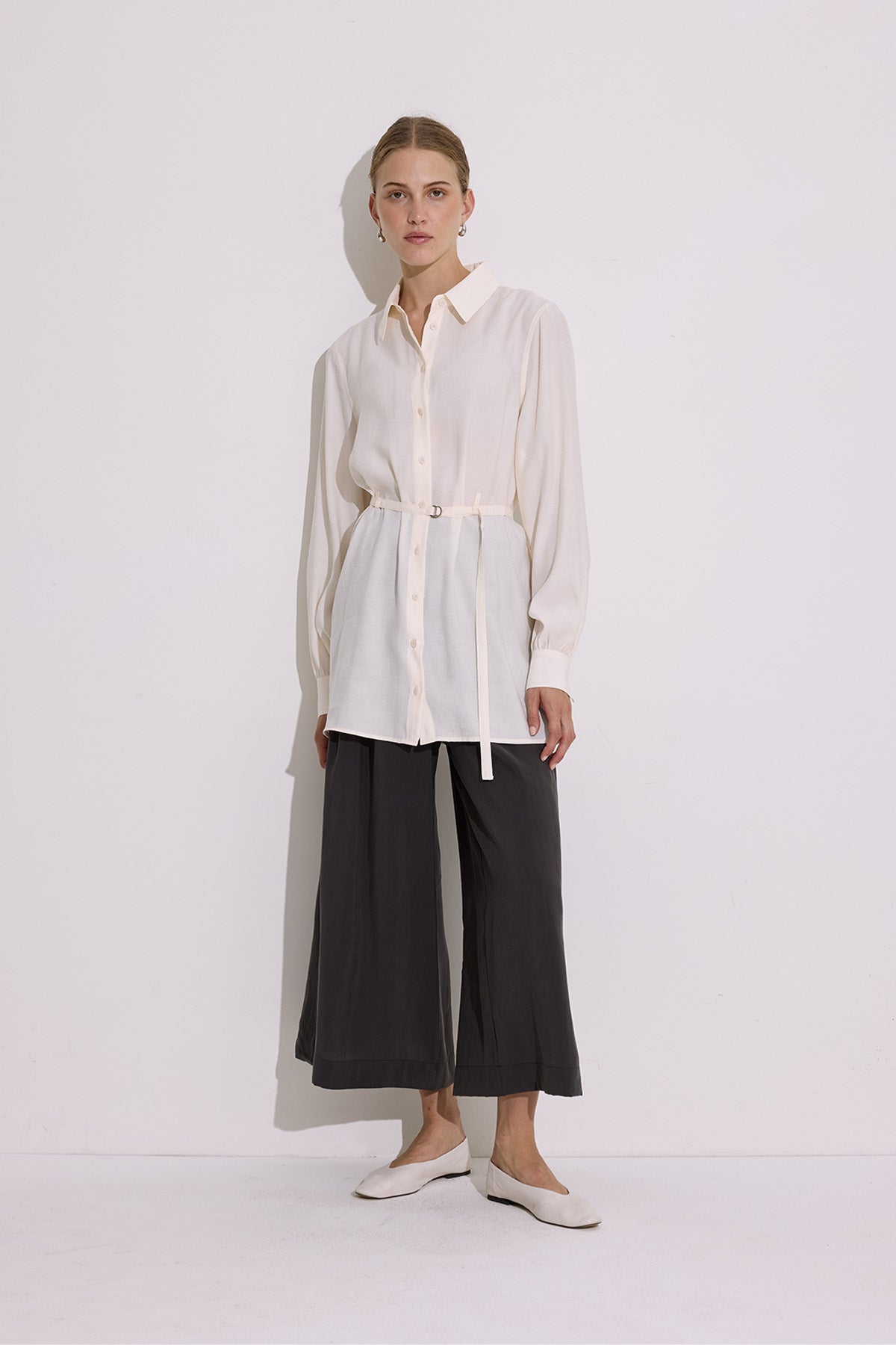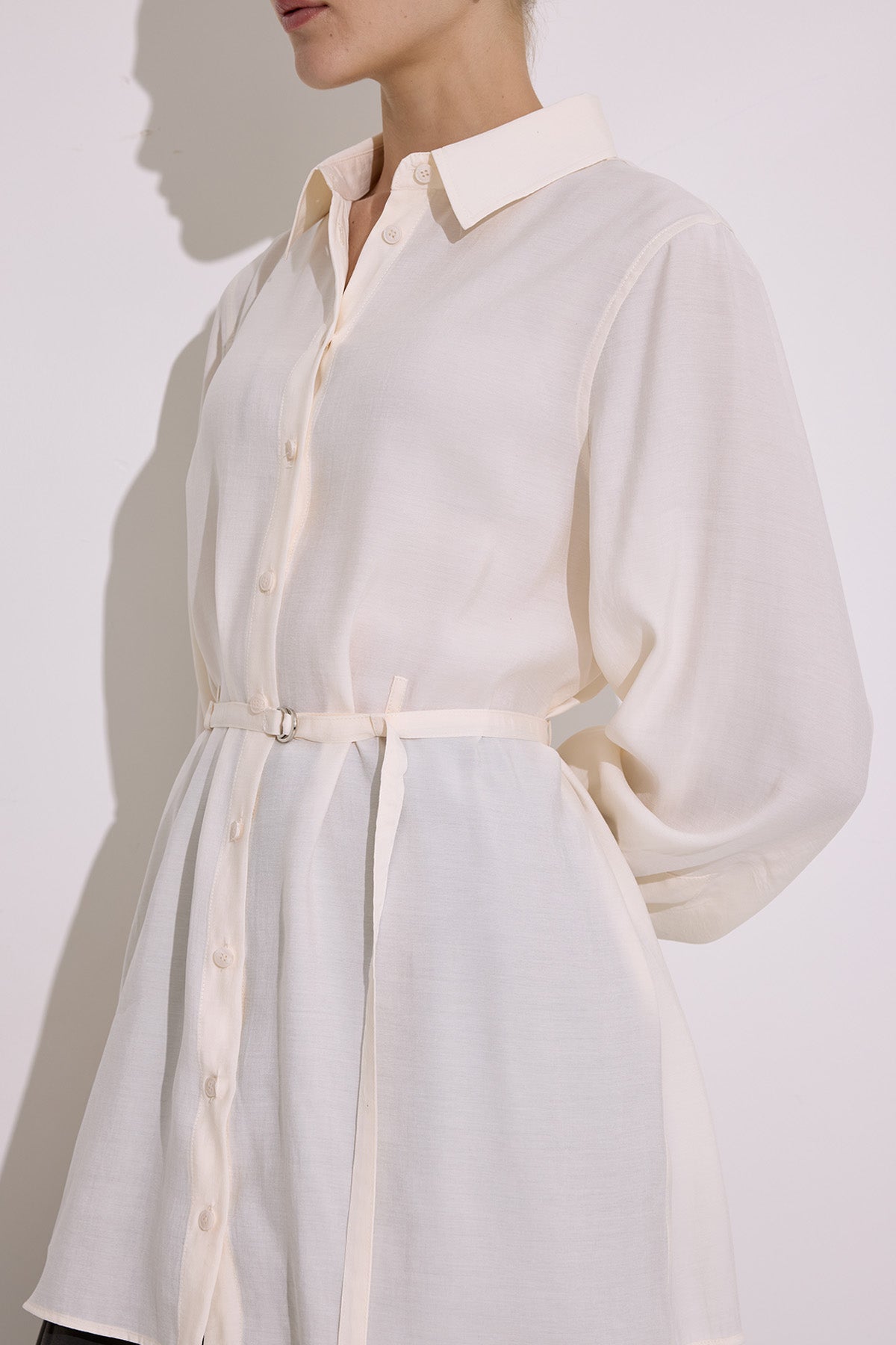 MODAL KEMERLİ GÖMLEK EKRU
