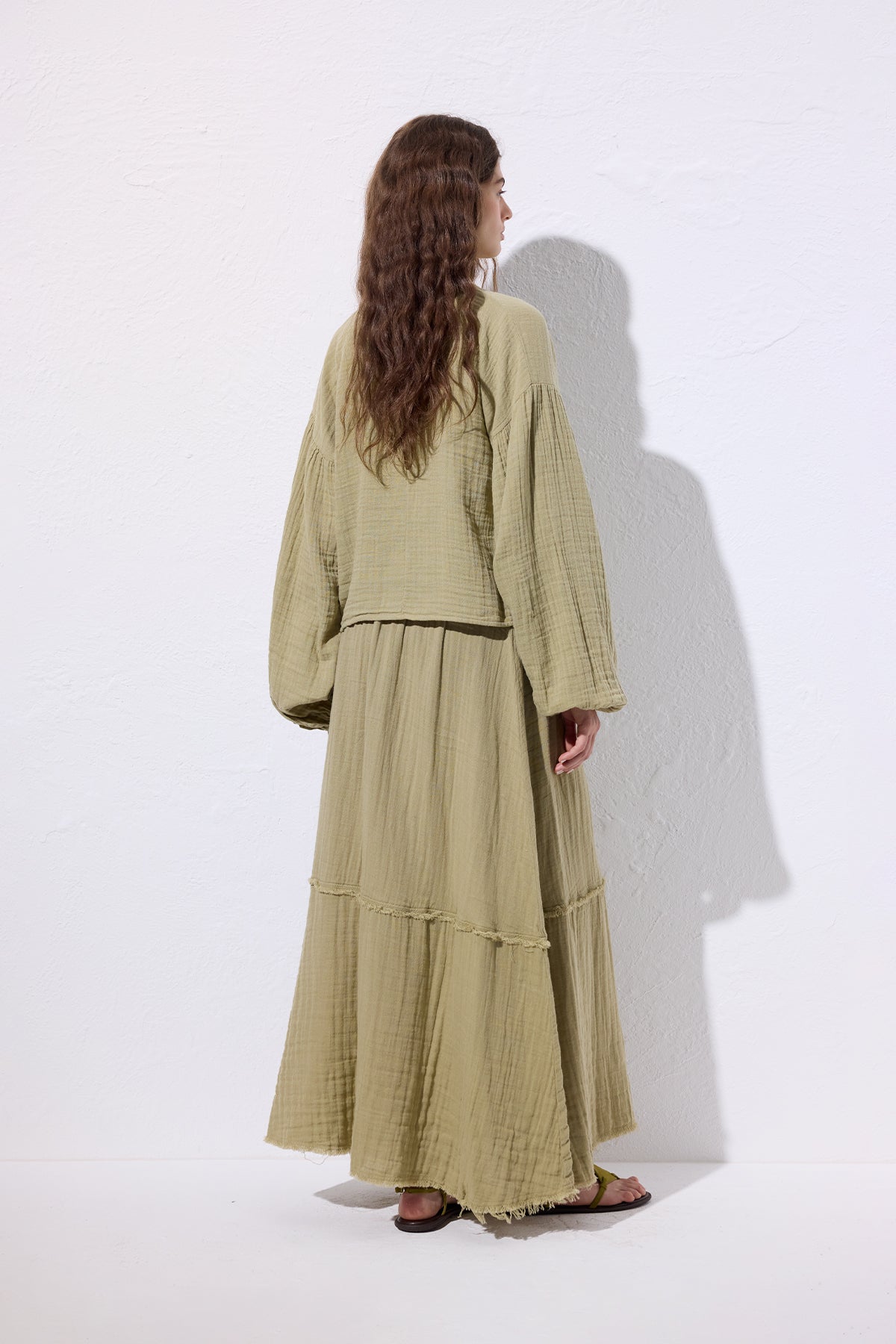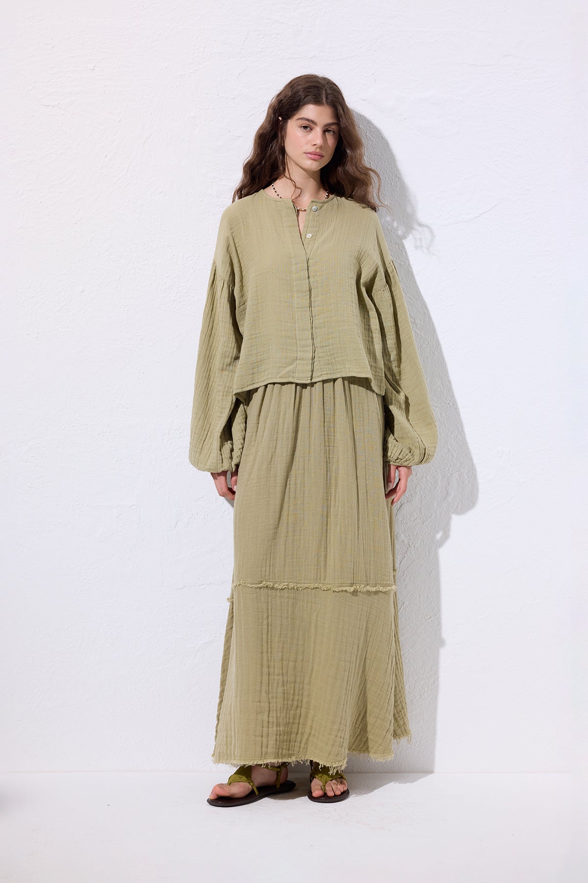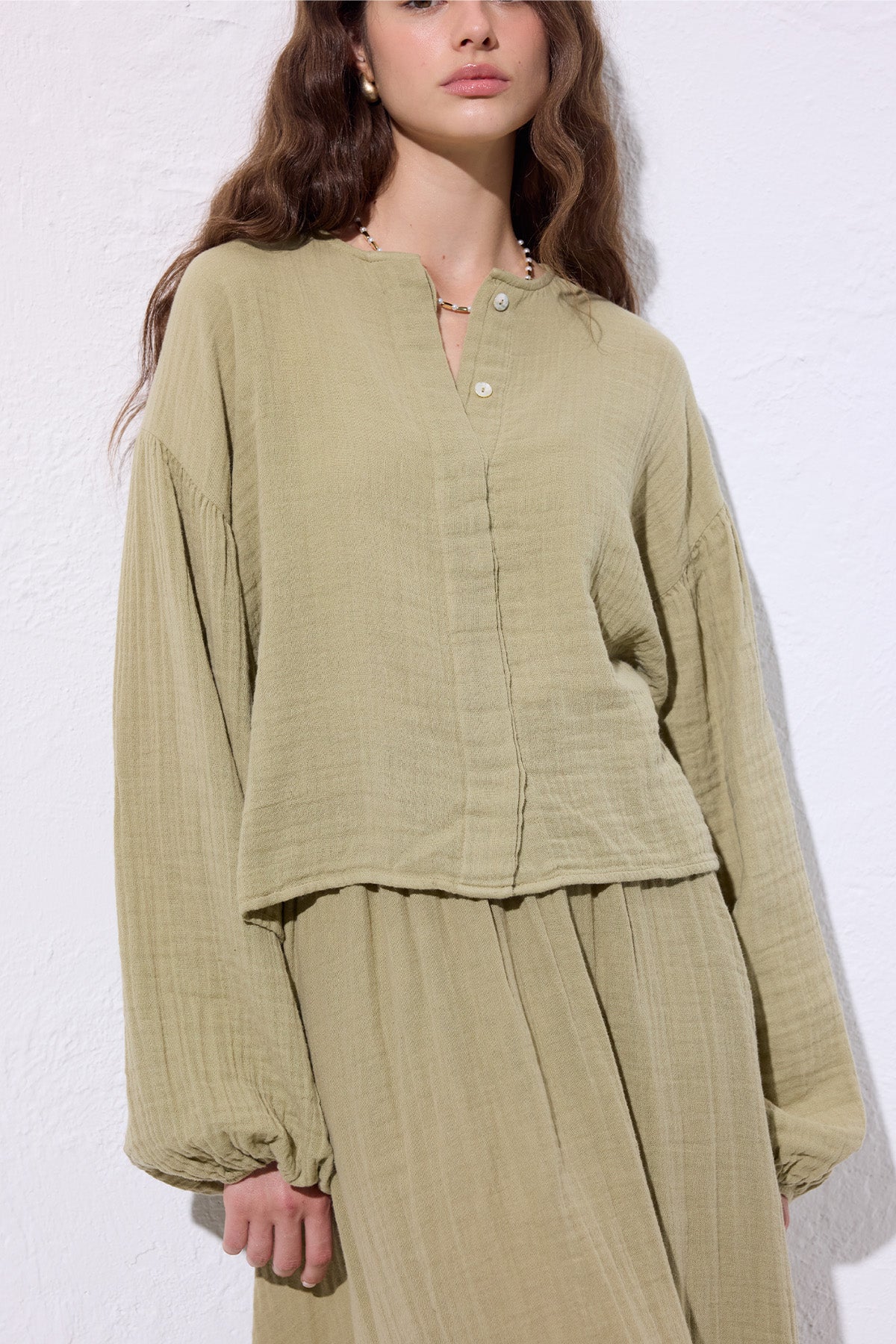 MÜSLİN BALON KOL KISA BLUZ ADAÇAYI