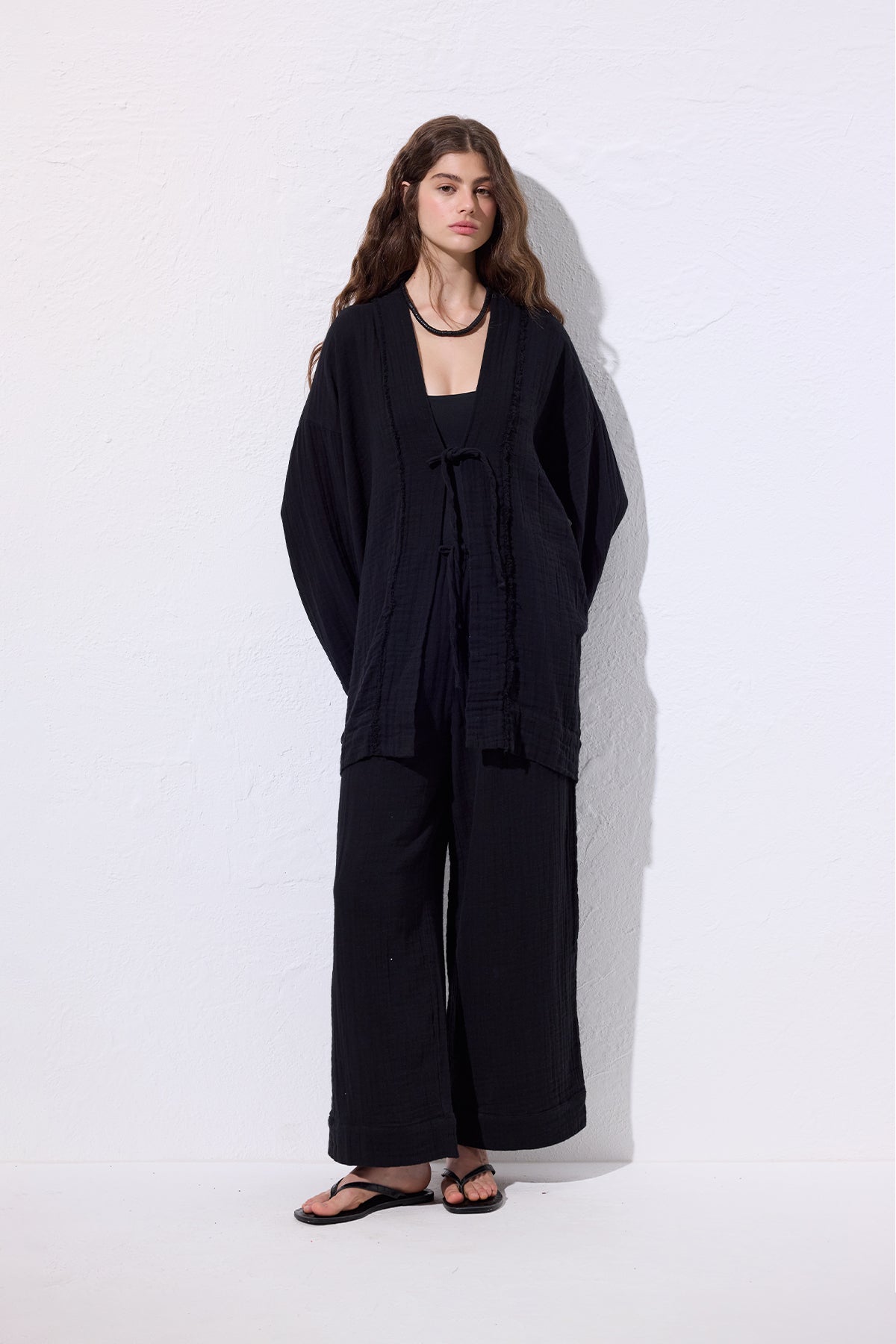 MÜSLİN GENİŞ KOLLU KİMONO SİYAH