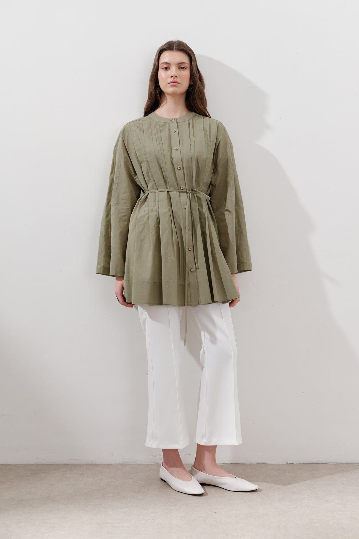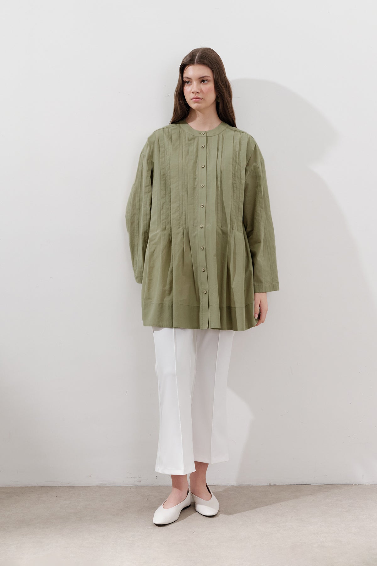 Pileli Geniş Kollu Tunik Fıstık Yeşili