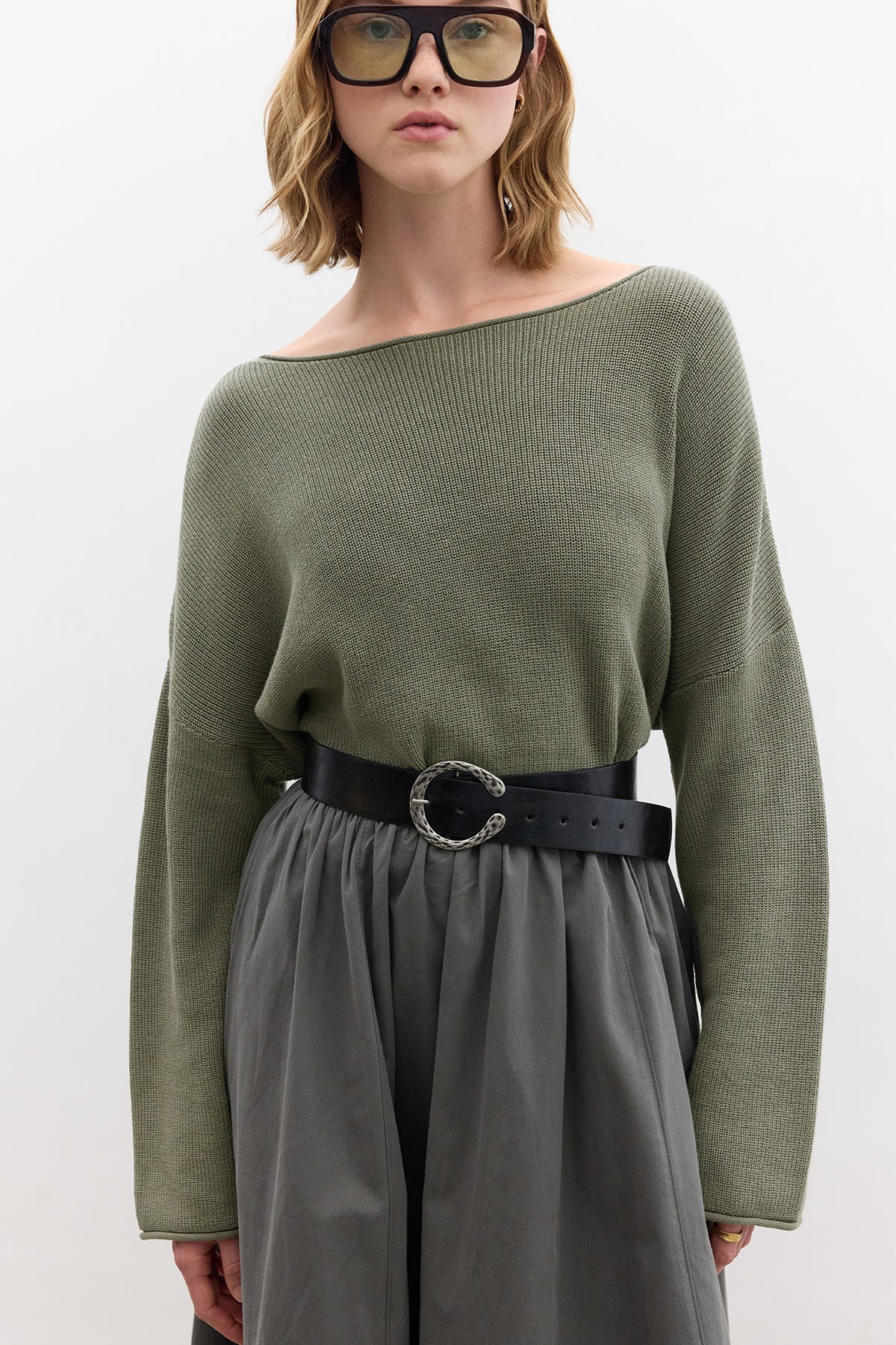 Büyük Boy Drapeli Pamuklu Kazak Haki