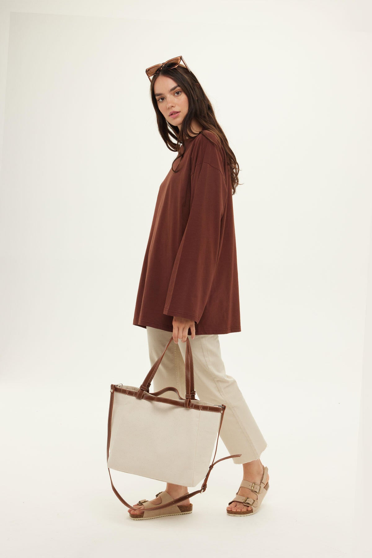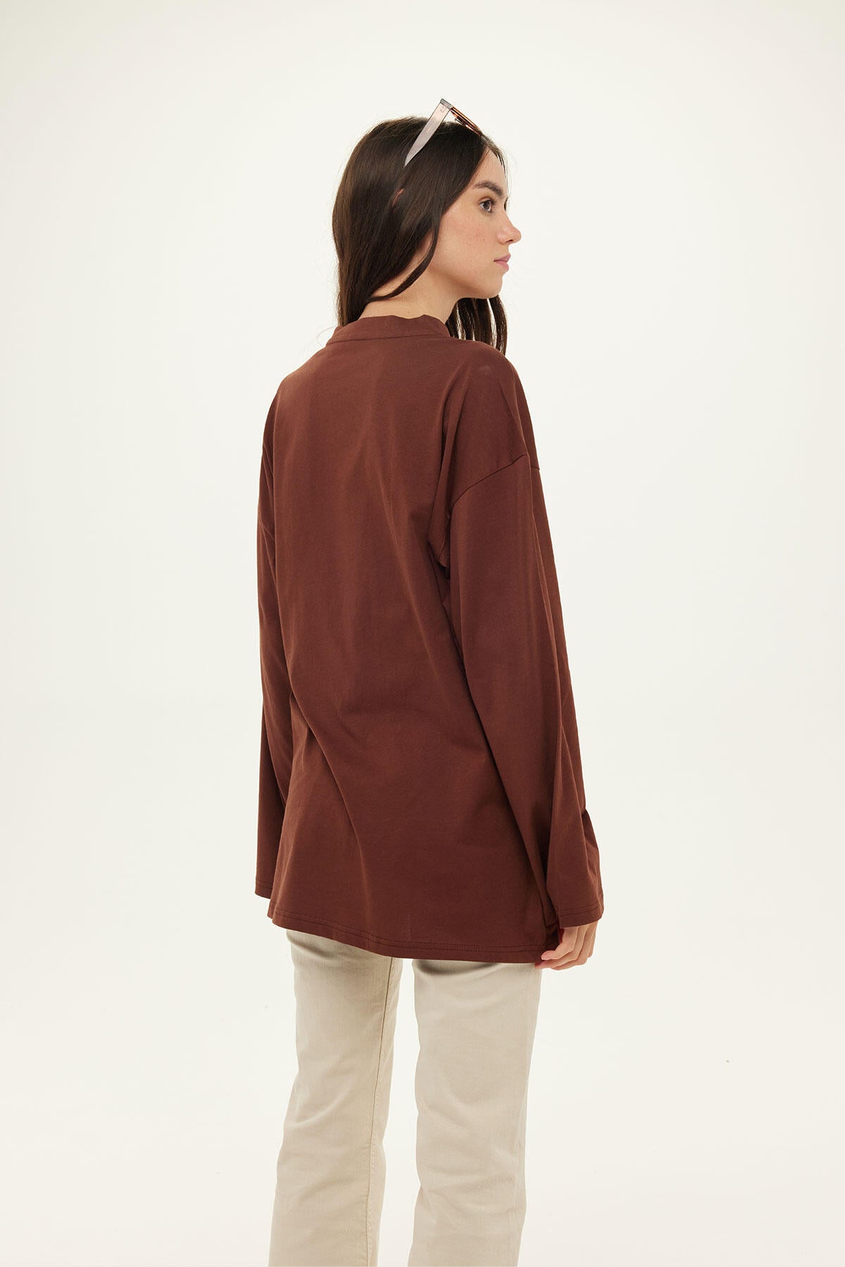 Büyük Boy Uzun Kollu Tişört Çikolata