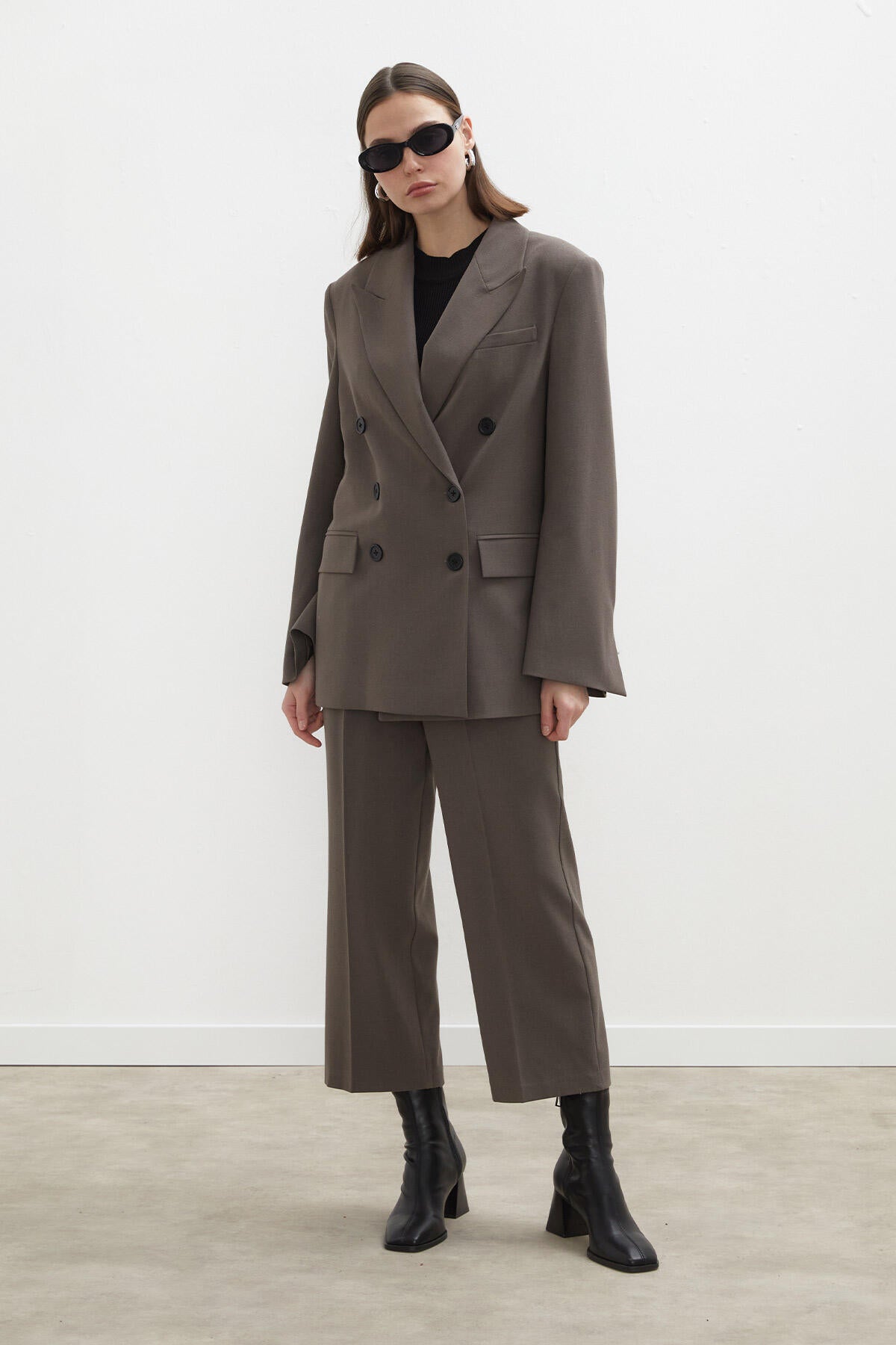 Oversize Kruvaze Blazer Ceket Vizon