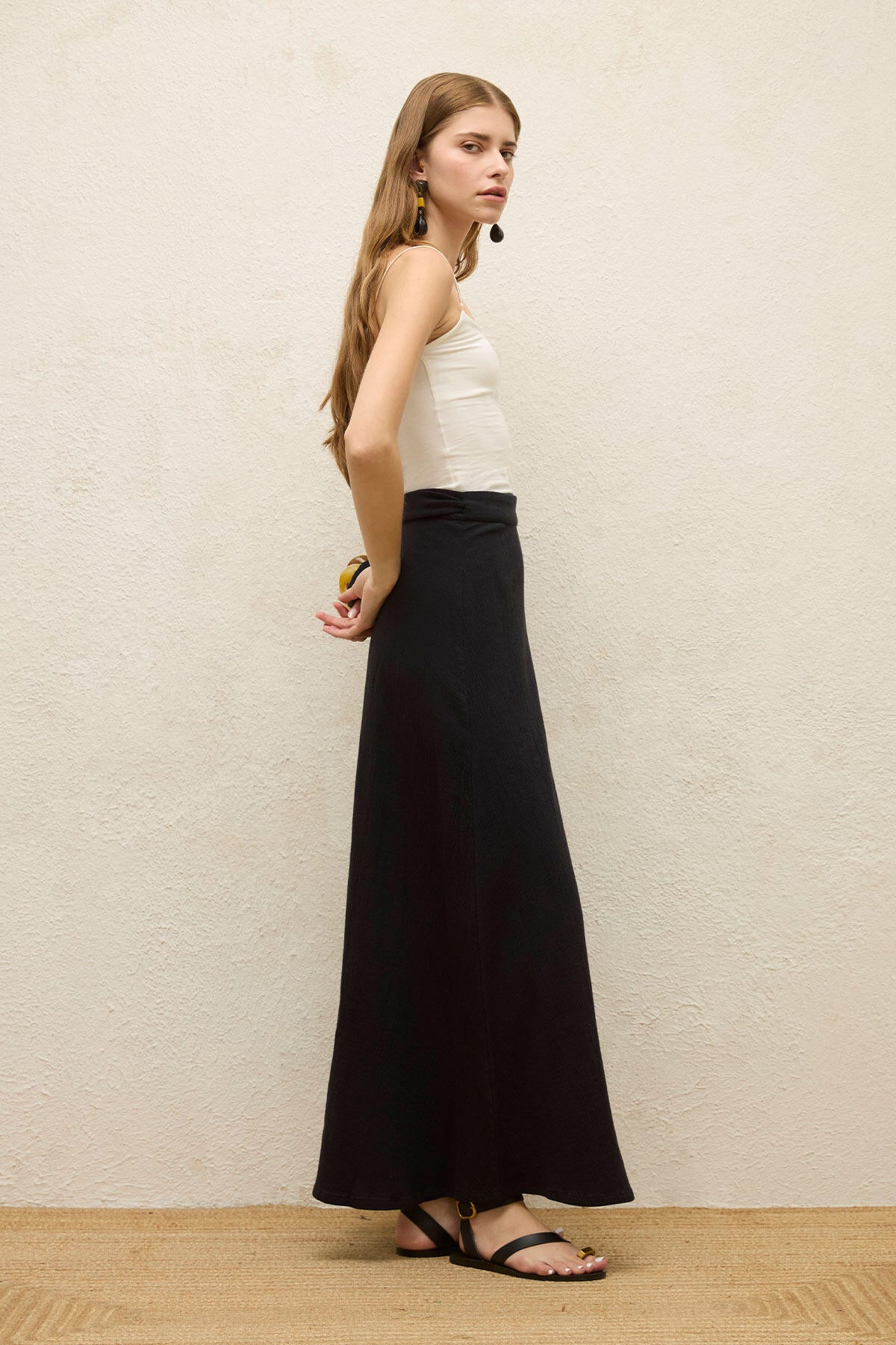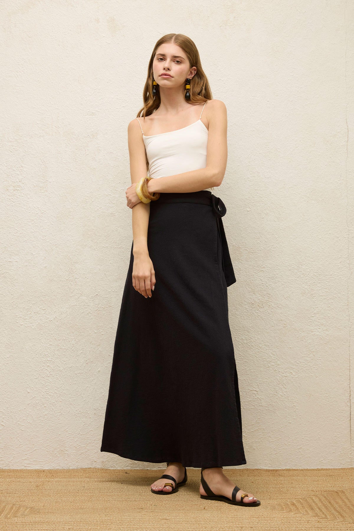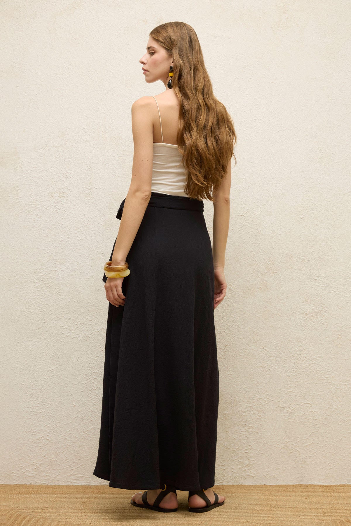 Pamuklu Bağcıklı Bel Sarma Etek Siyah
