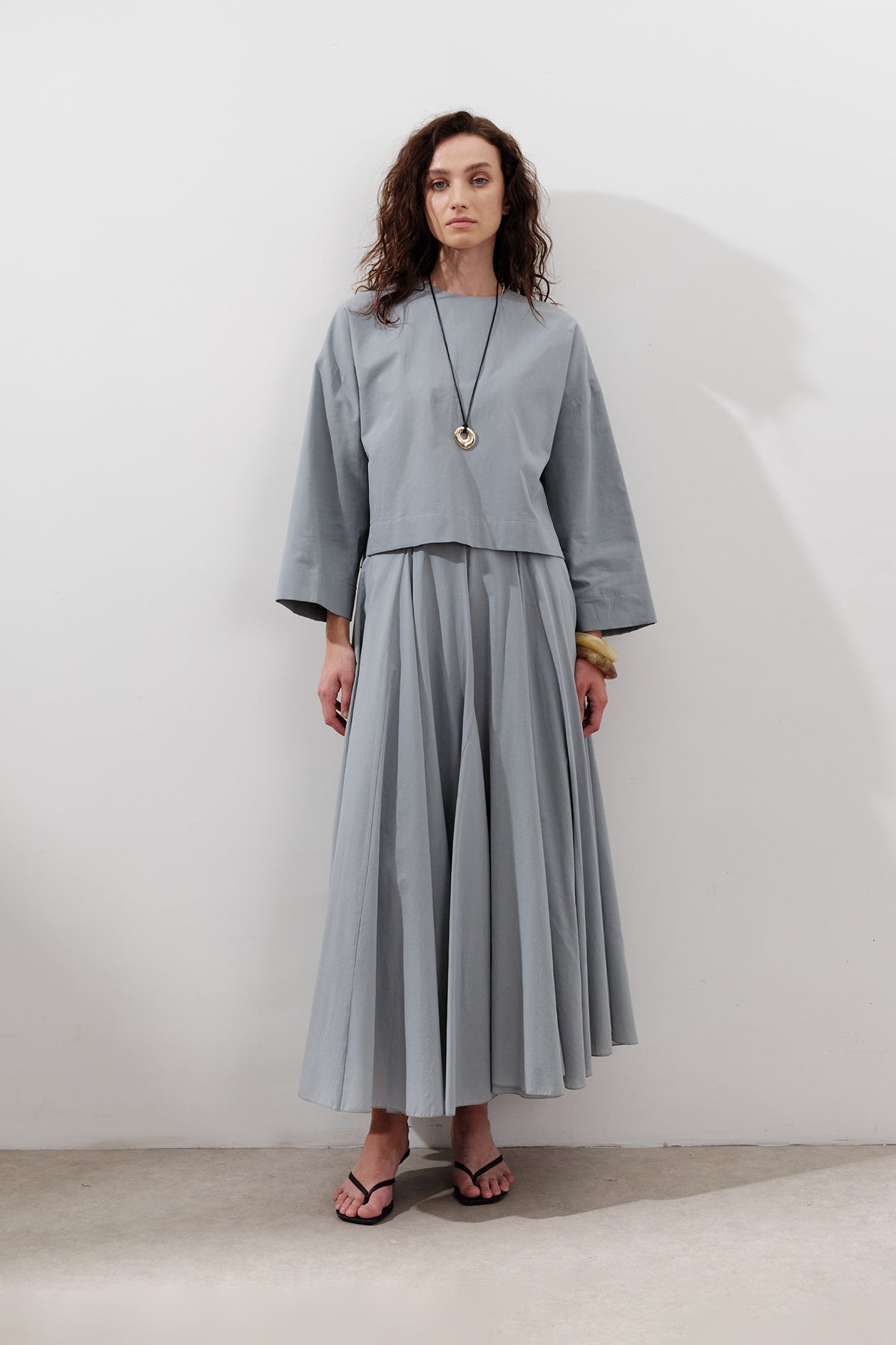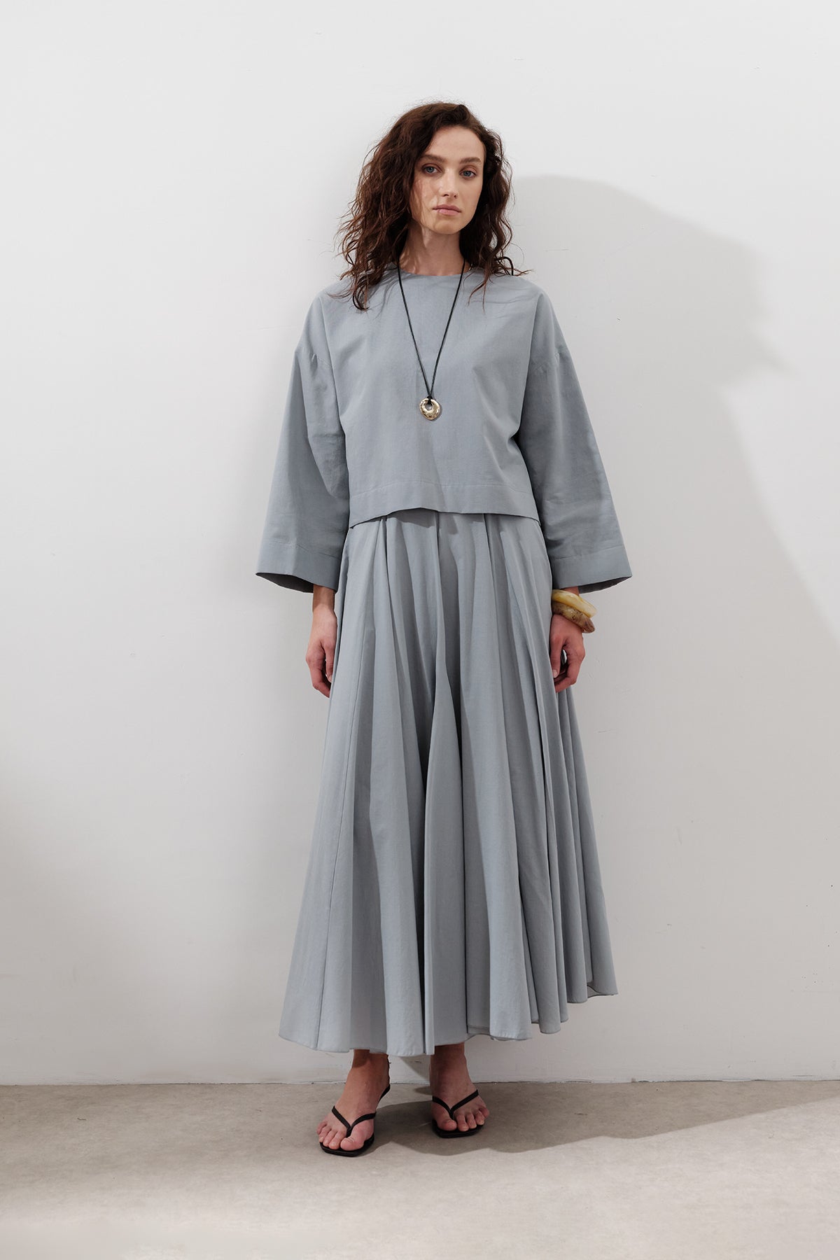 Pamuklu Kırpılmış Uzun Kollu Üst Toz Mavisi