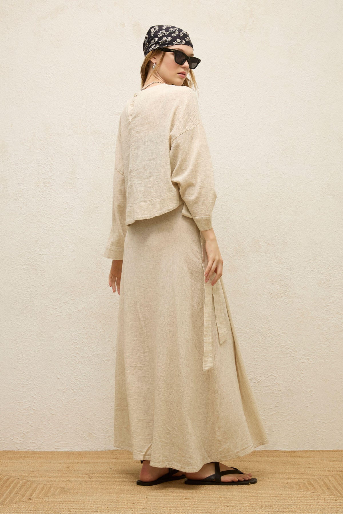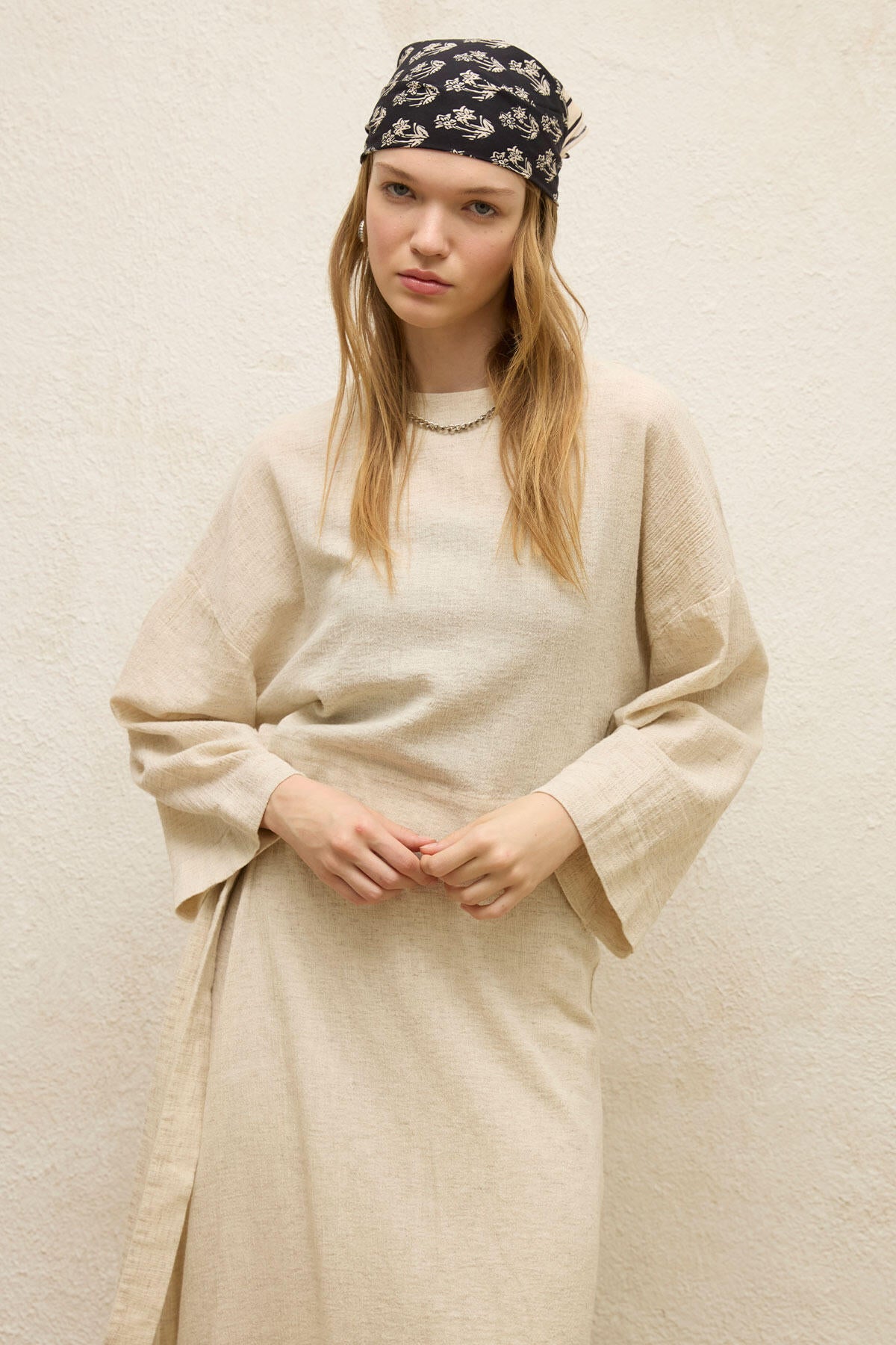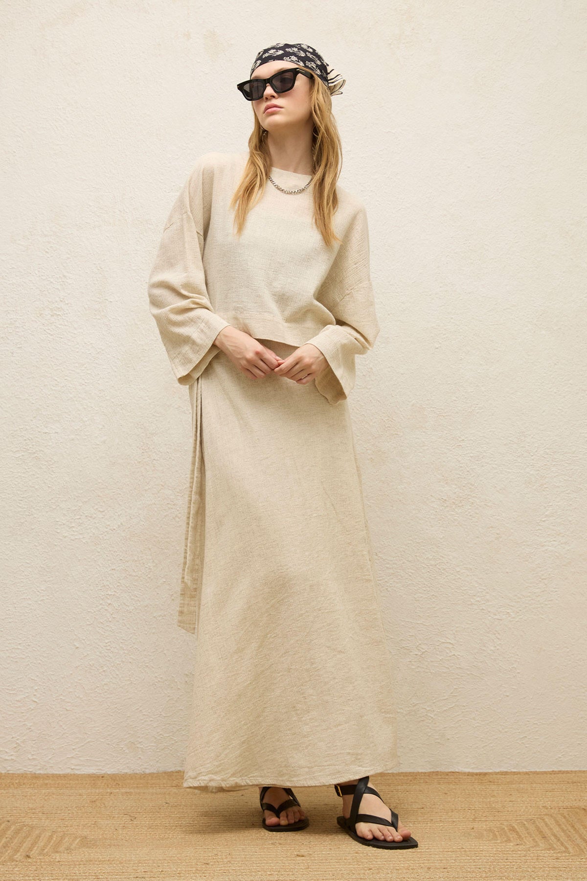 Pamuklu Geniş Kollu Kısa Bluz Doğal