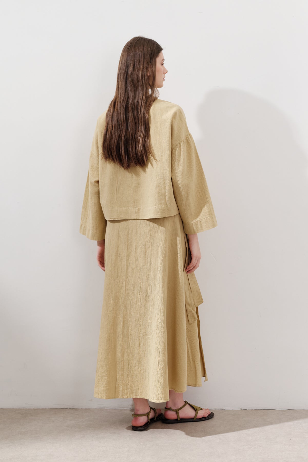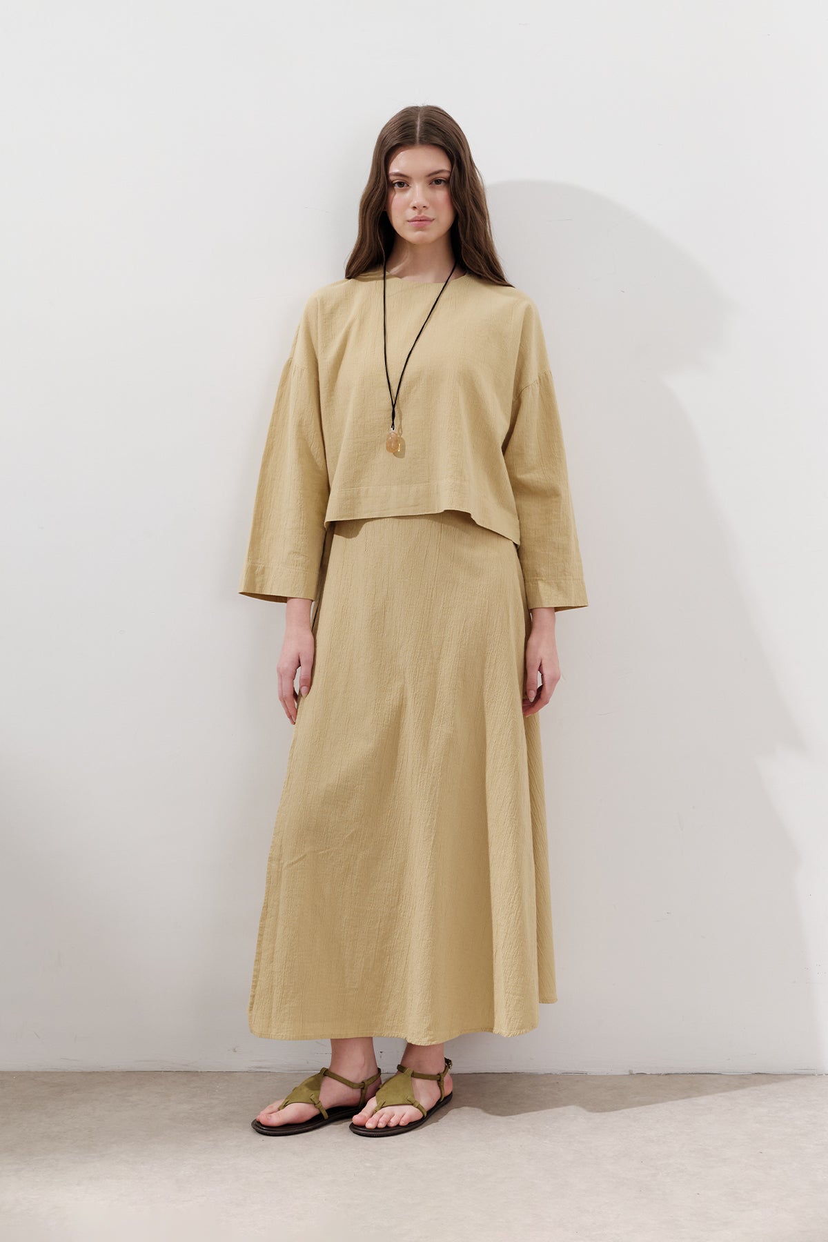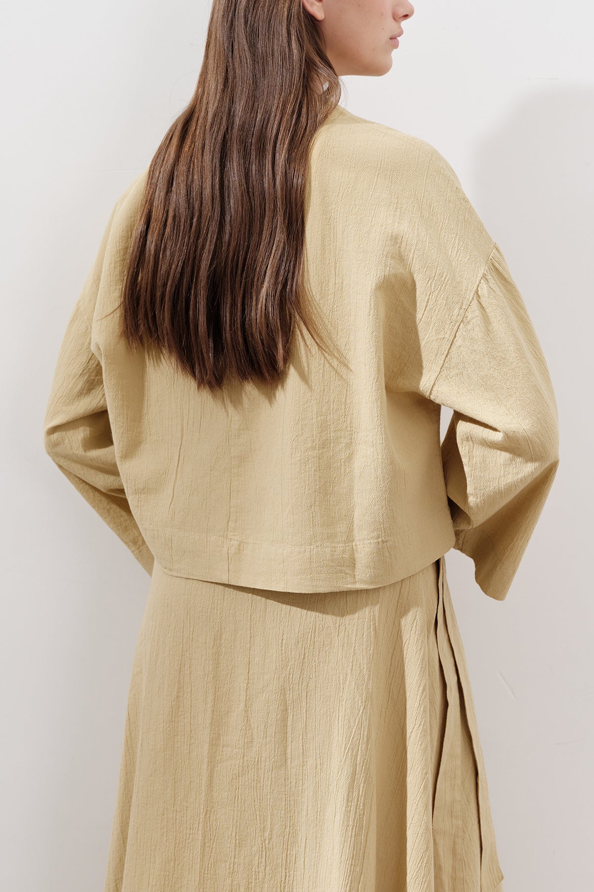 Pamuklu Geniş Kollu Kırpılmış Bluz Sarı