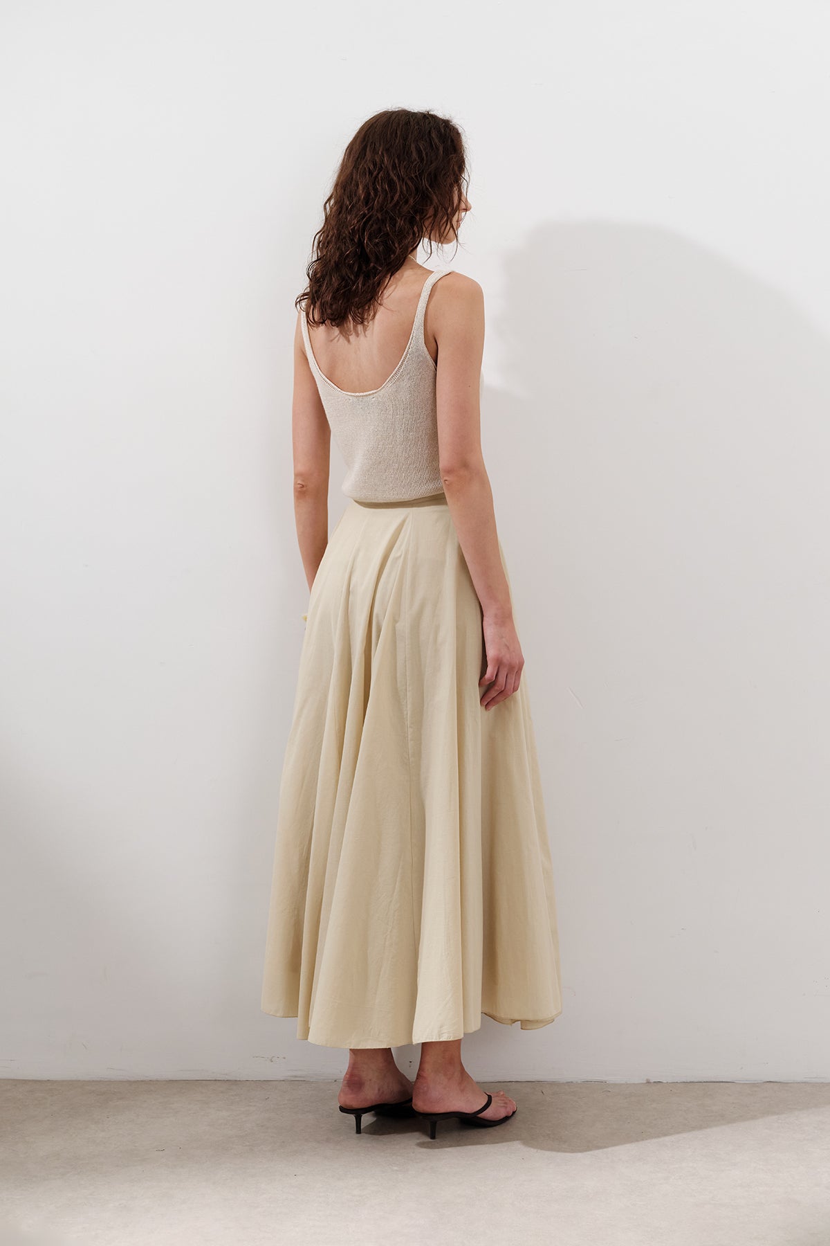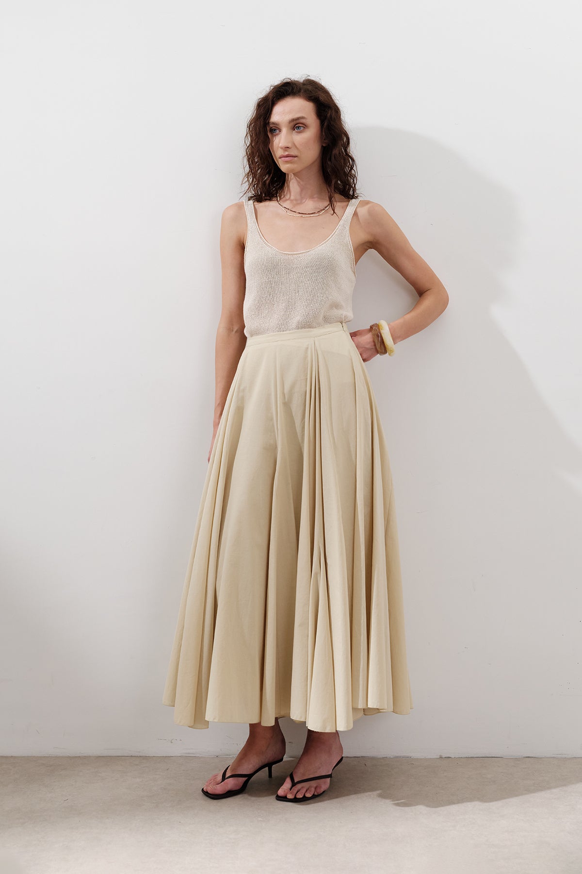 Panelli Pamuklu Uzun Etek Pastel Sarı