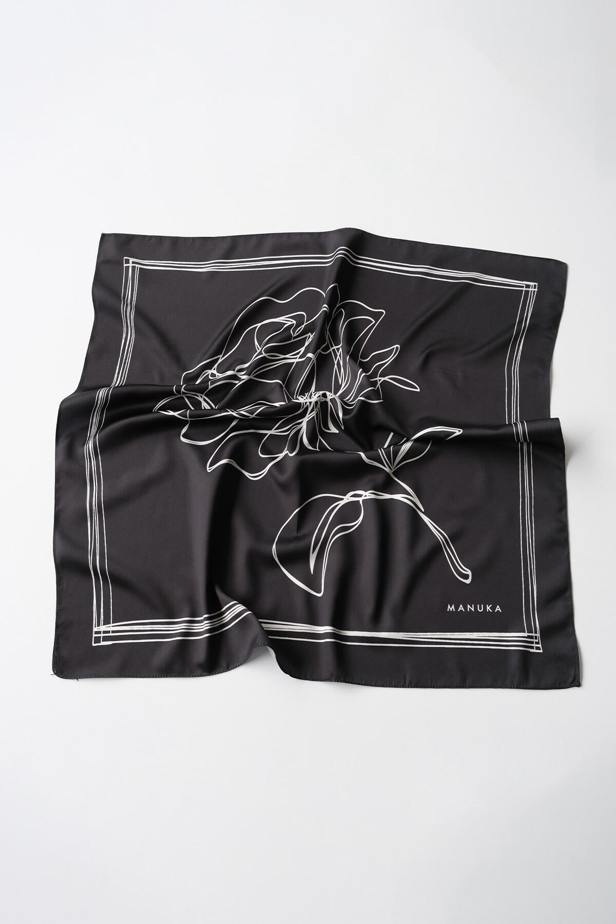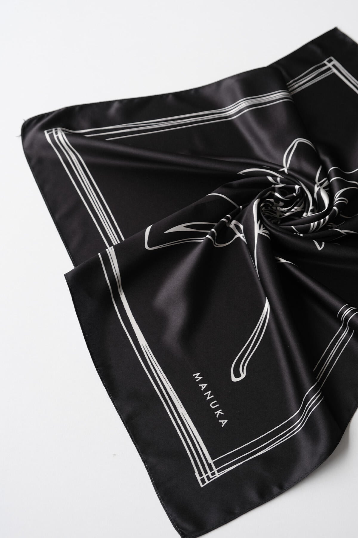 Desenli Saten Boyun Eşarp Gül Siyah