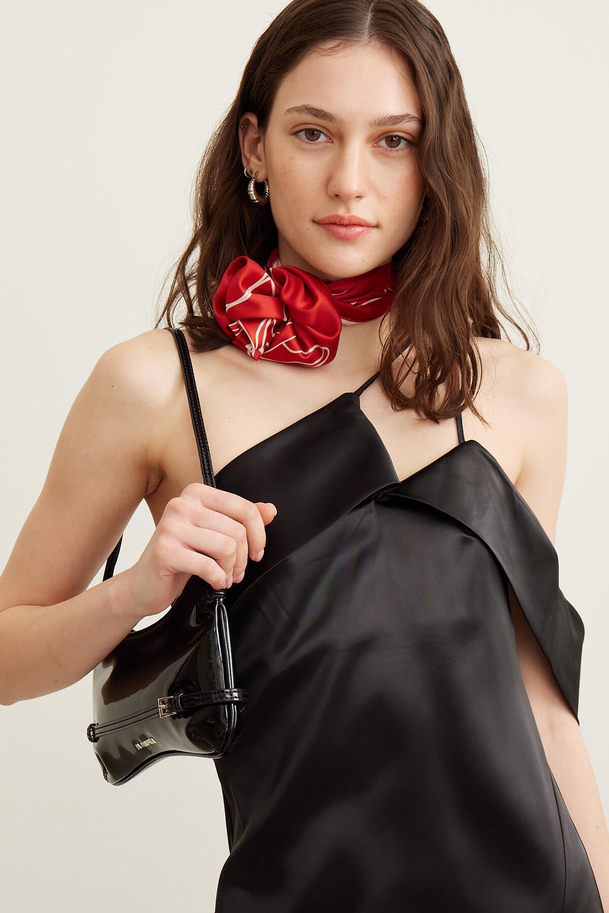 Desenli Saten Boyun Eşarp Gül Kırmızı