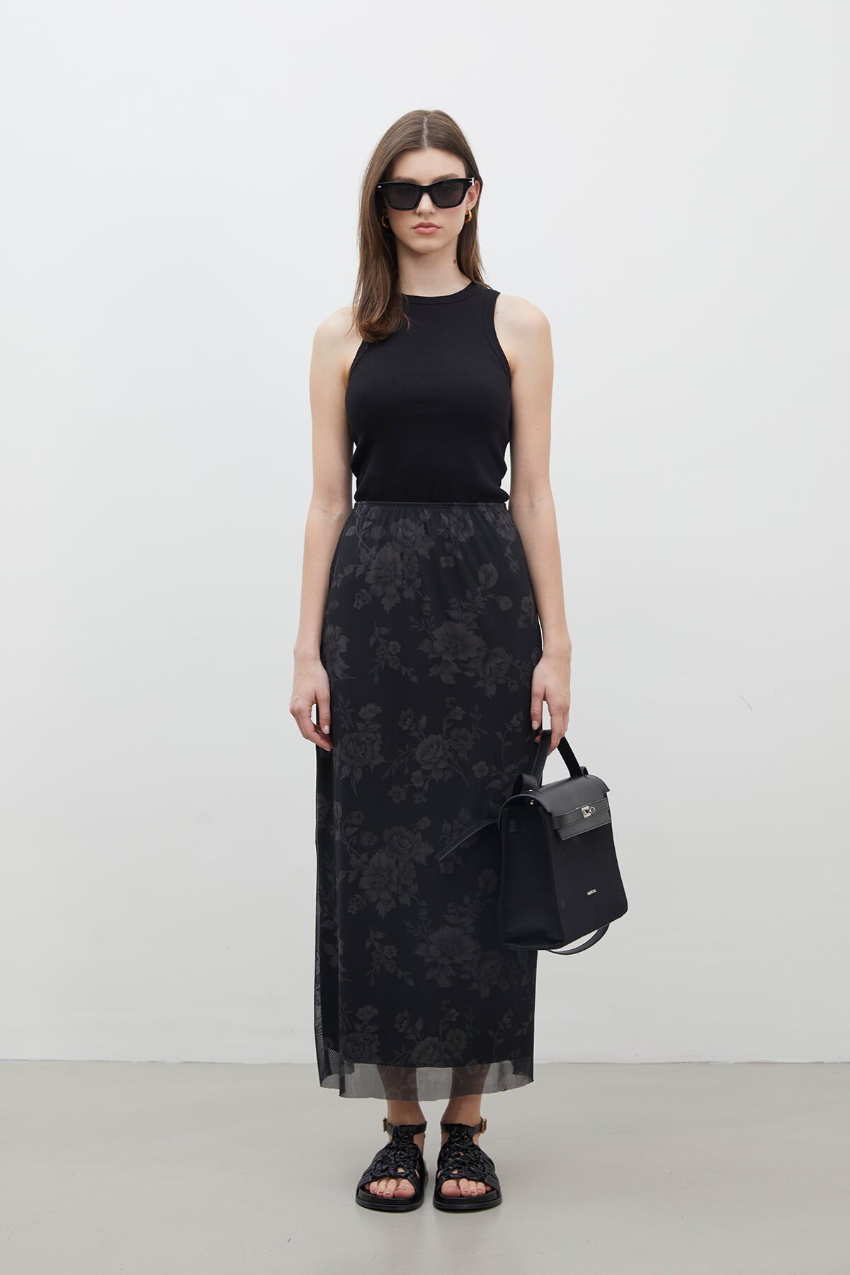 Bu tam boy etek, yüksek belde zarif bir şekilde oturur ve zahmetsizce giyilebilmesi için elastik bir bantla sabitlenir. Rahatınız için astarlanmış ve güzel desenli tül kumaştan üretilmiştir, attığınız her adımda akar.