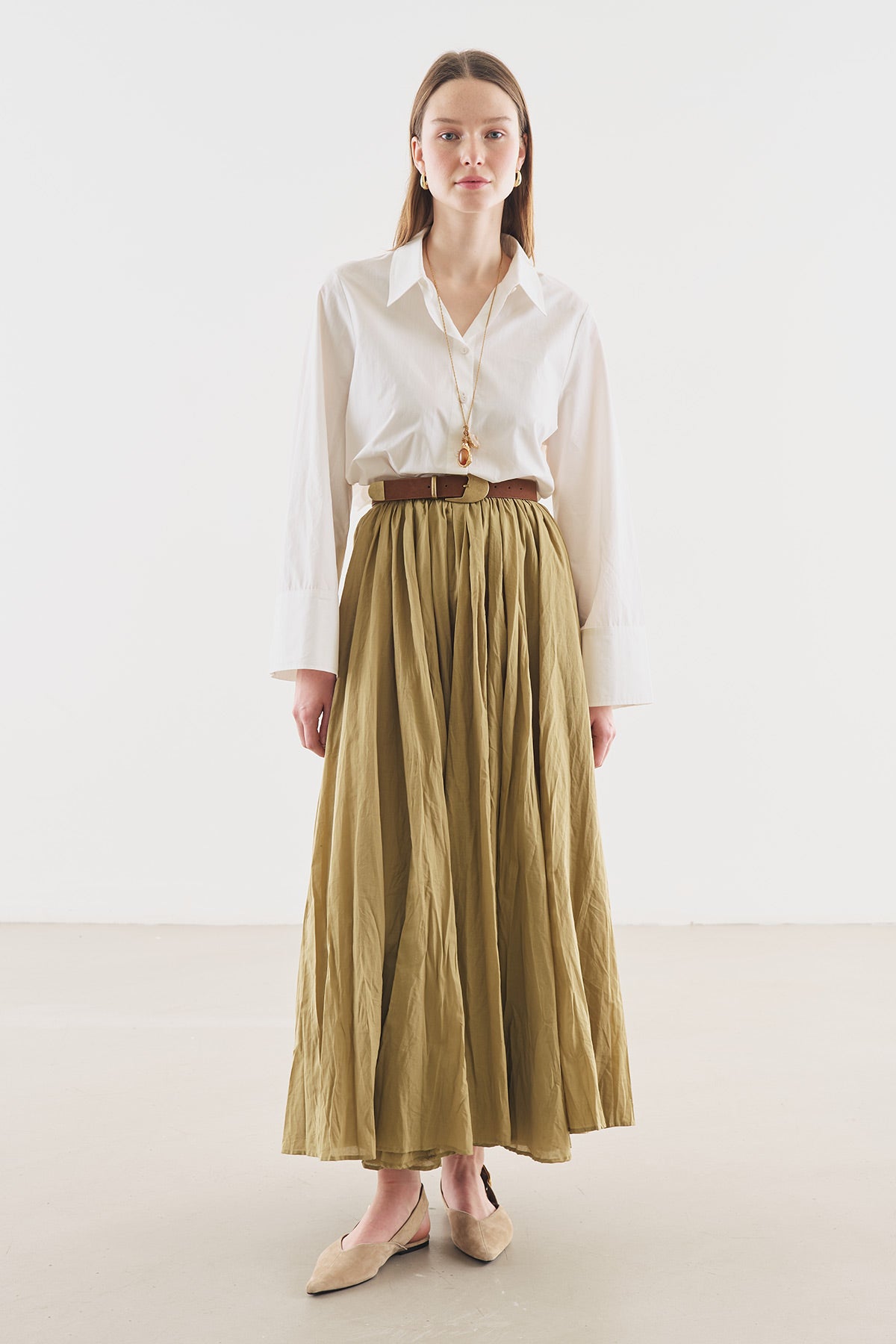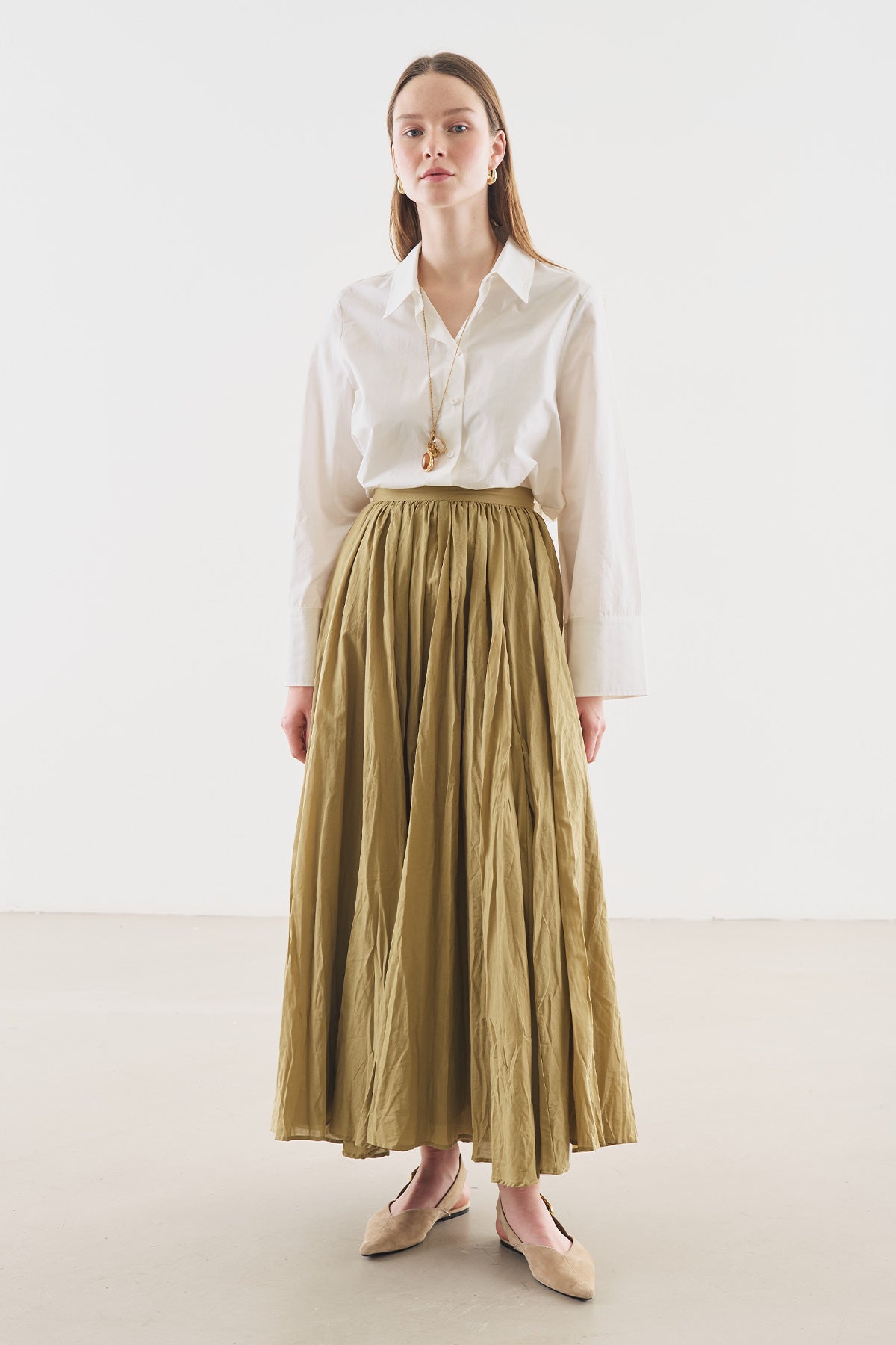 Pleated Maxi Skirt Sage Green
