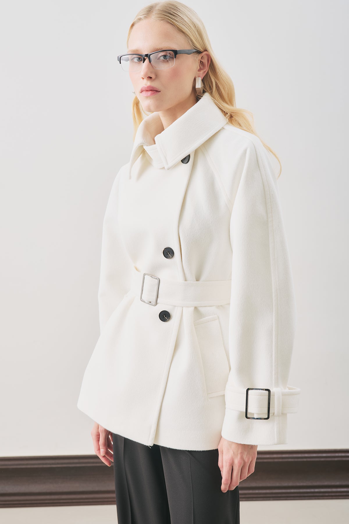 Norma kalıp,yüksek yaka-apolet detaylı,uzun kol,gizli pat kapamalı,belde kuşak detaylı,ara boy,düğme kapamalı, astarlı. Dokuma.