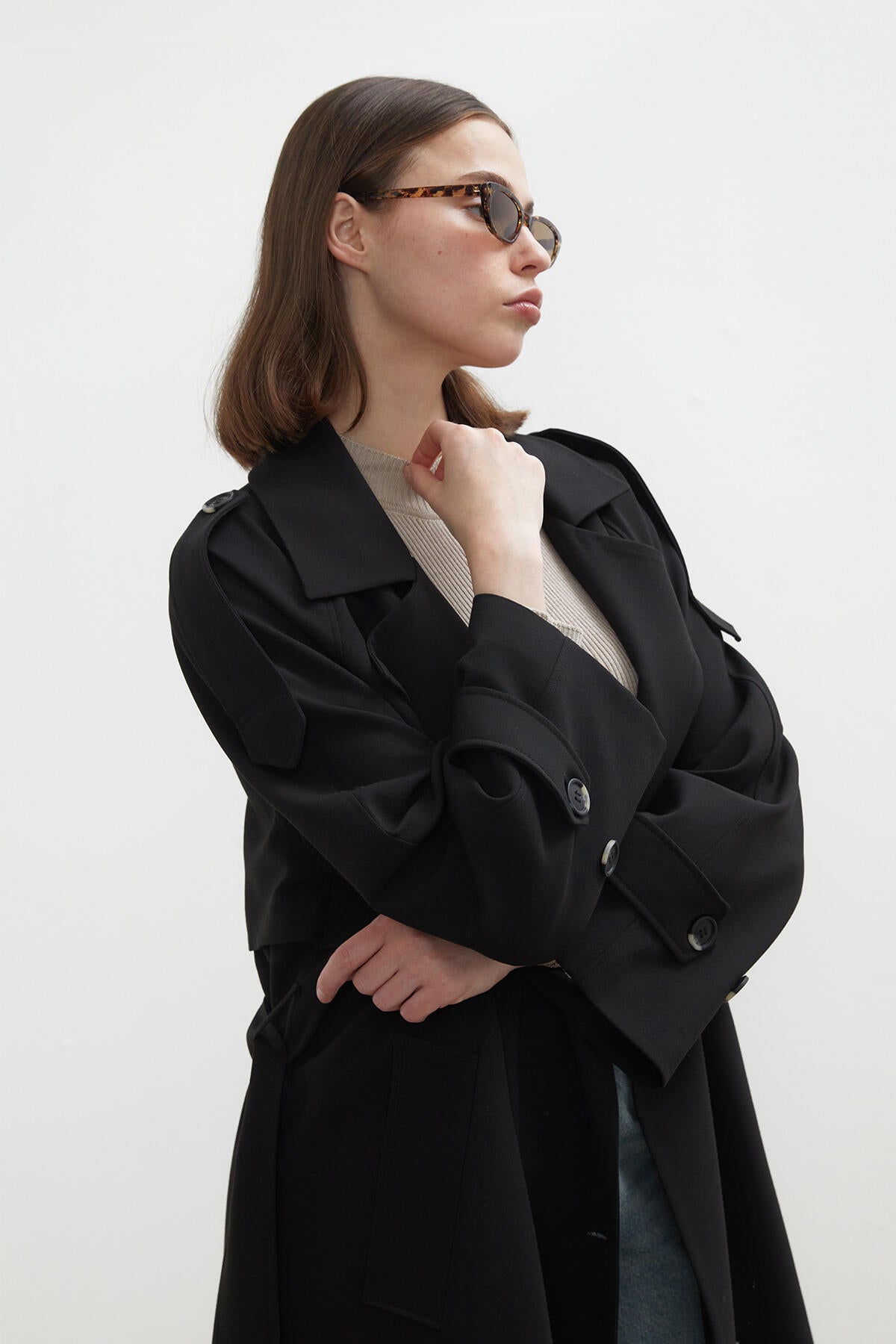 Premium Oversize Trençkot Siyah
