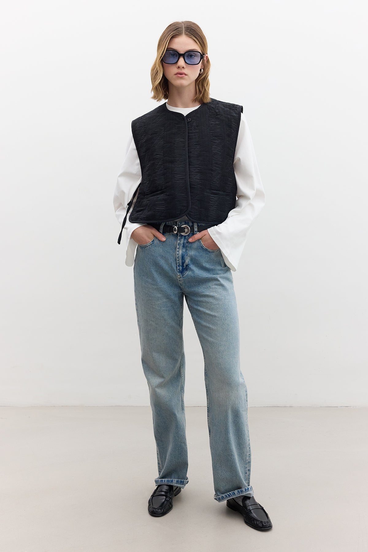 Kapitone İşlemeli Yelek Siyah