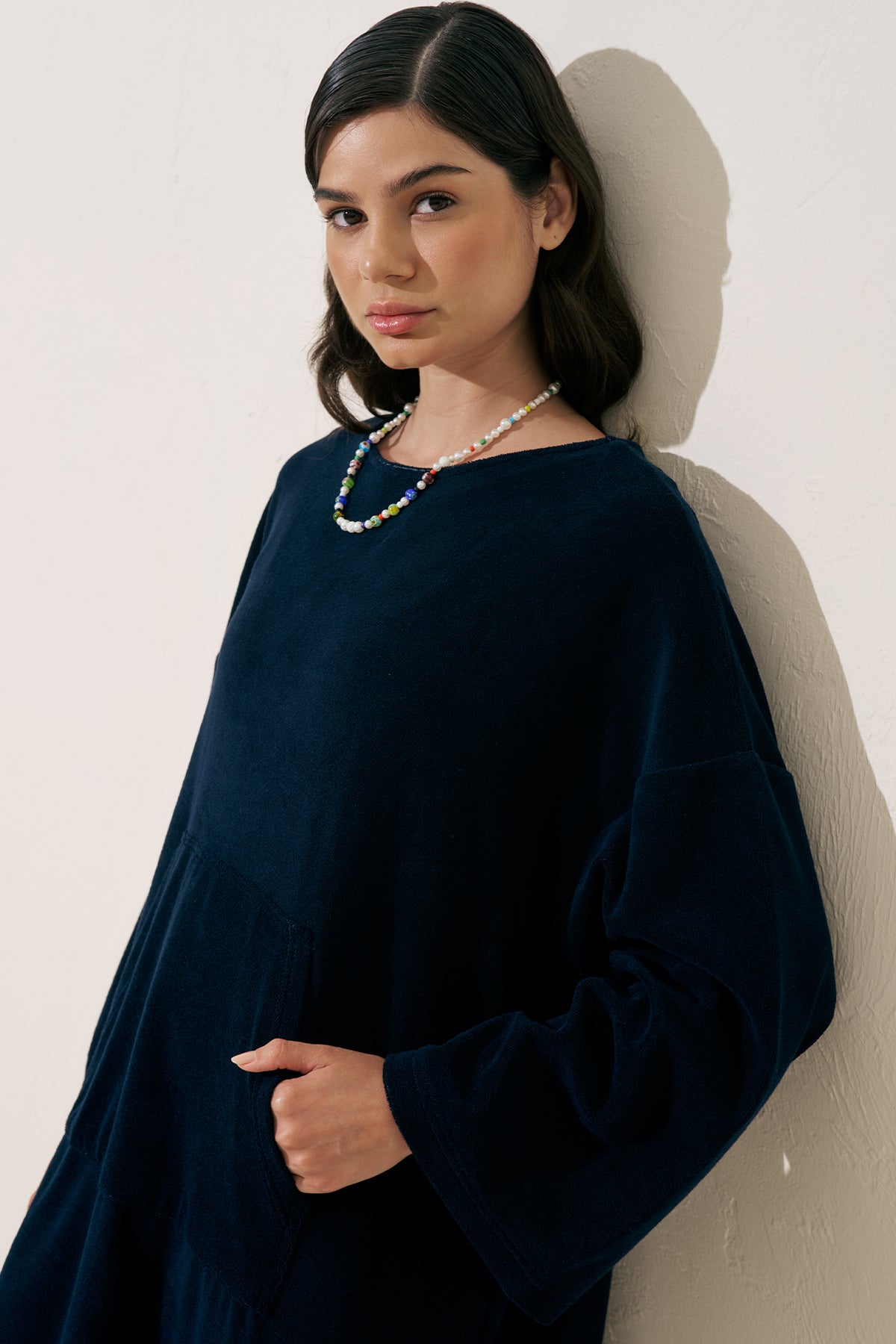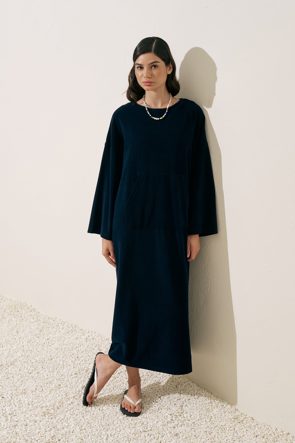 HAVLU KUMAŞ RAHAT ELBİSE LACİVERT