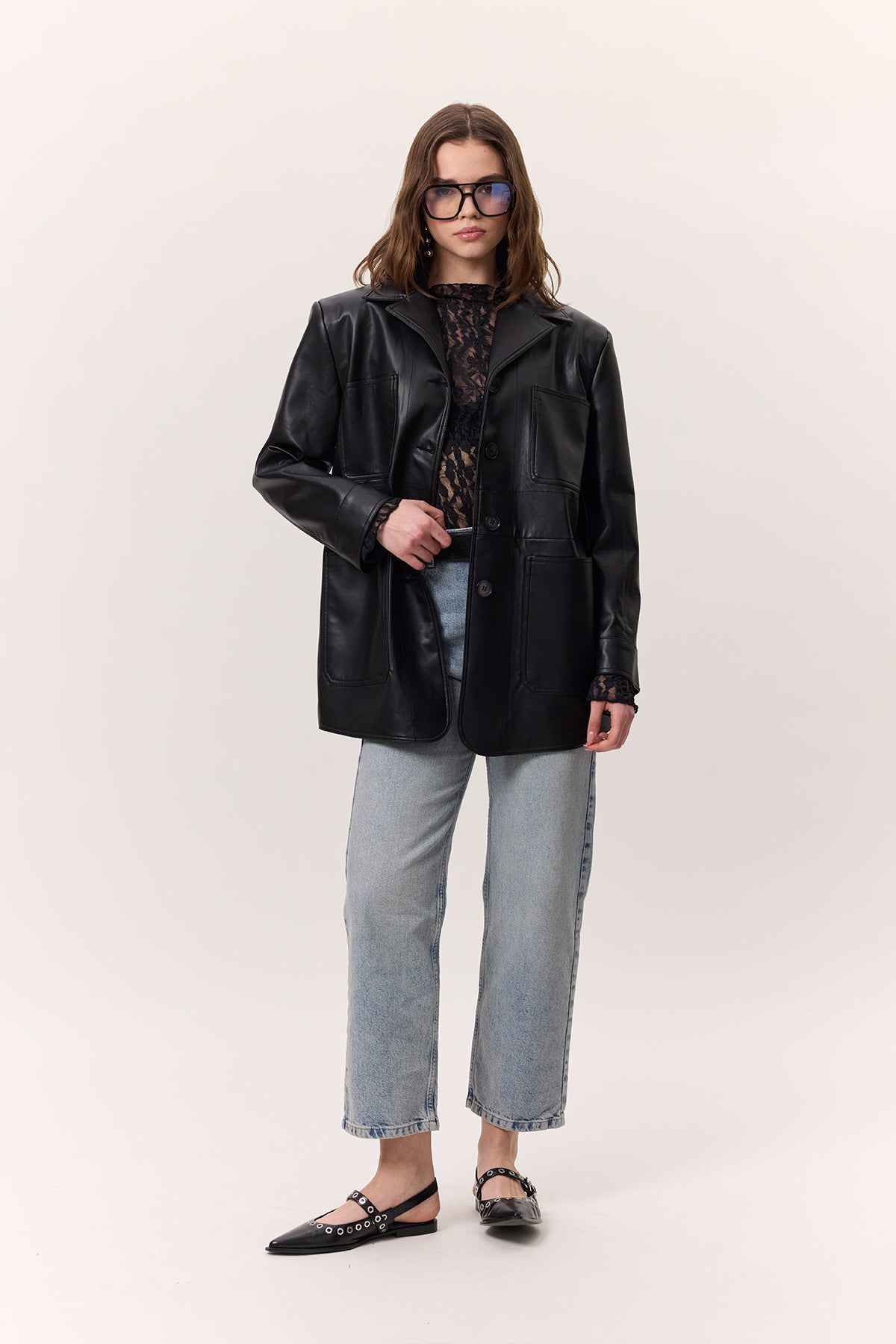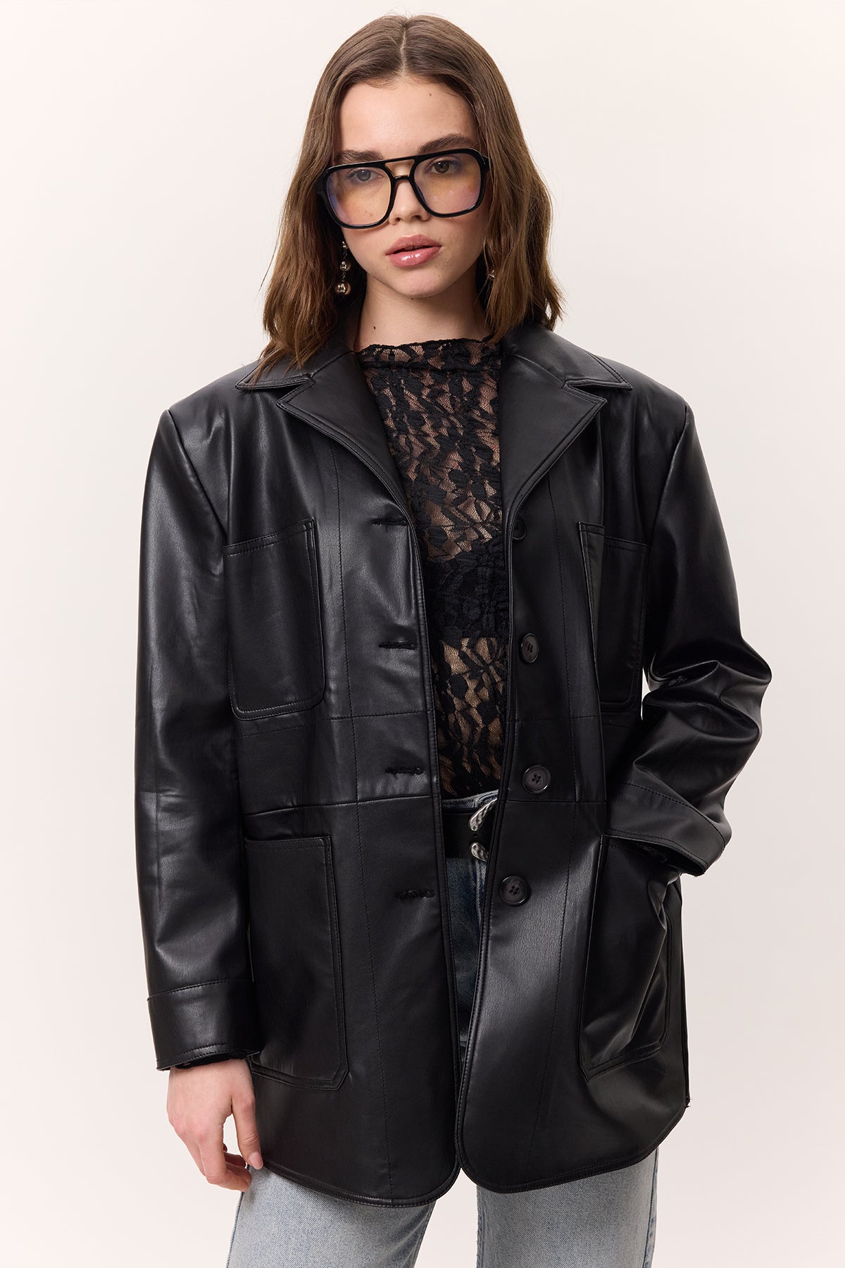 Retro Suni Deri Ceket Siyah