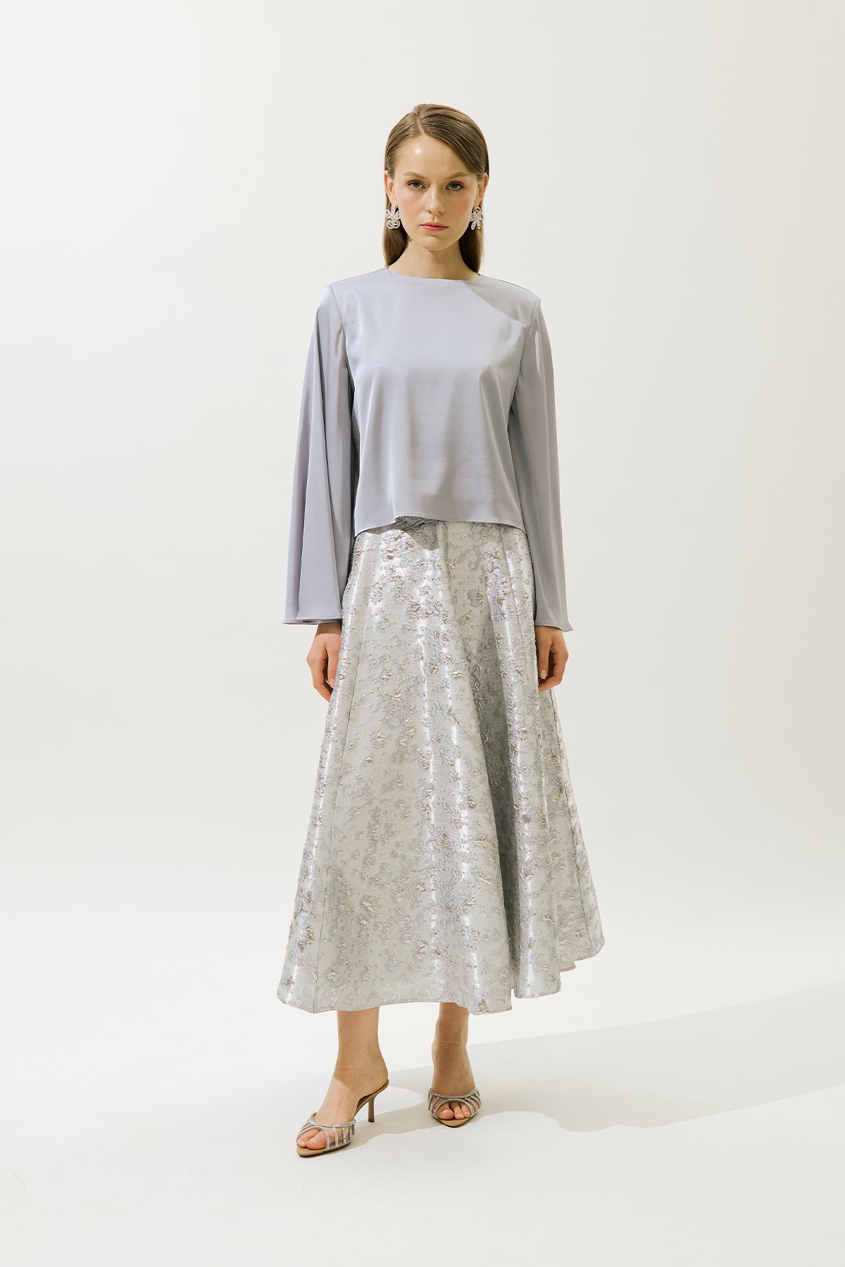 SATEN GENİŞ KOL BLUZ LİLA