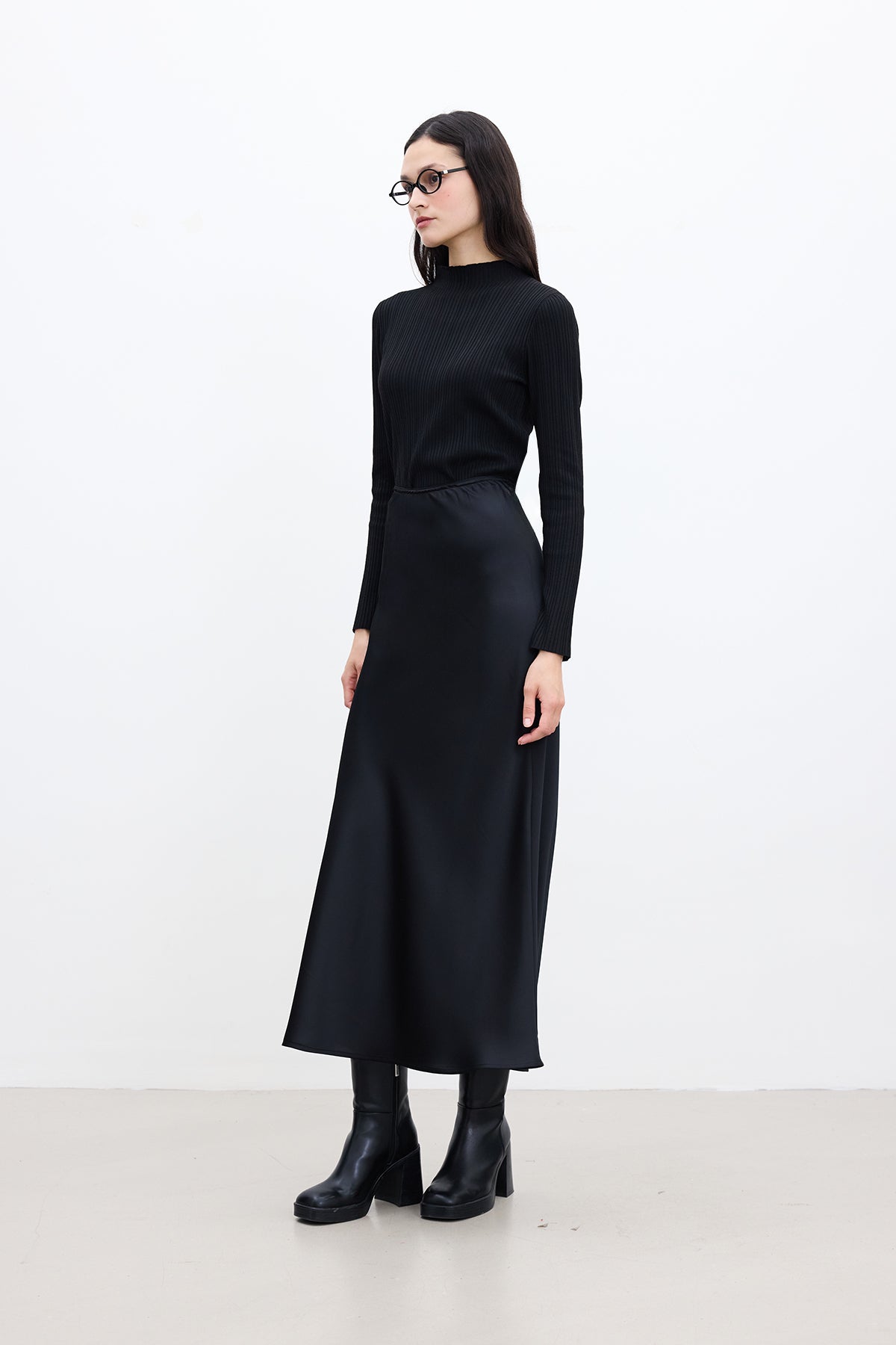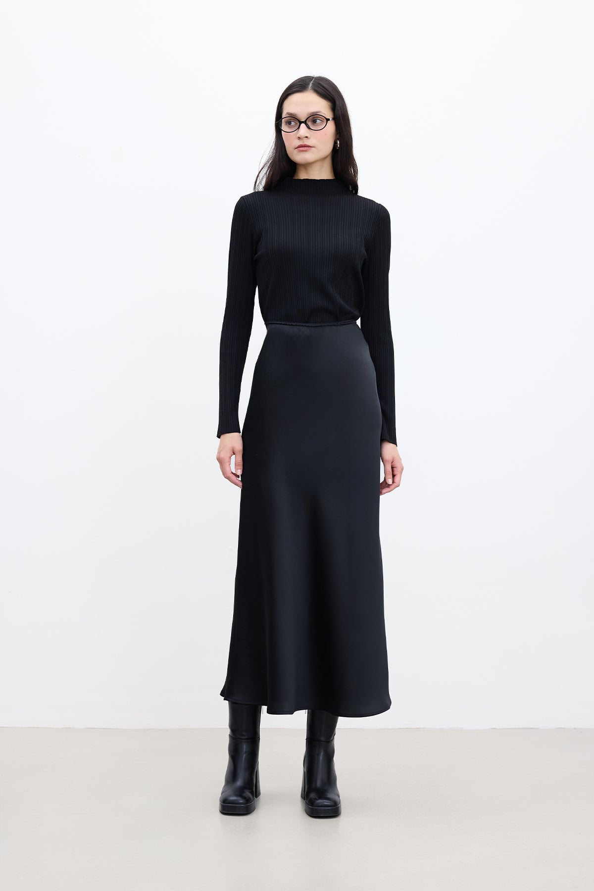 Saten Midi Etek Siyah