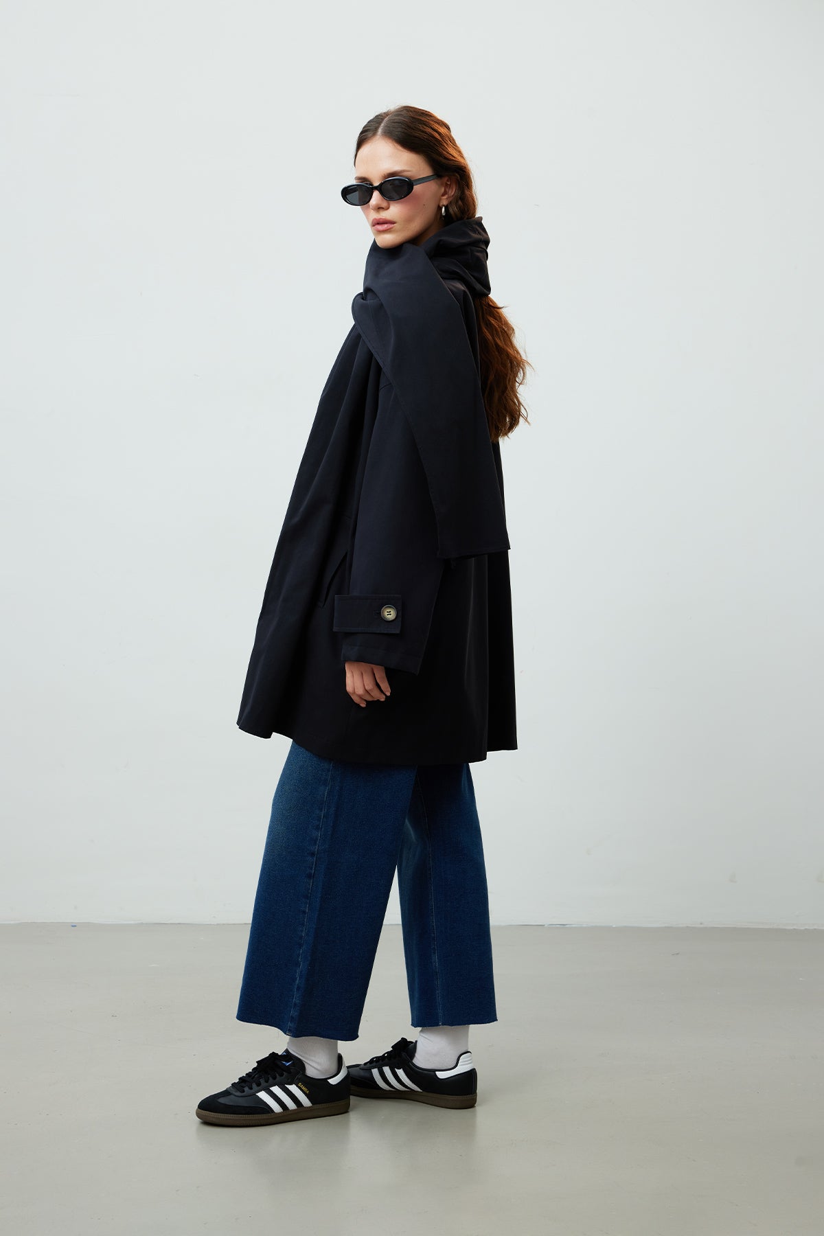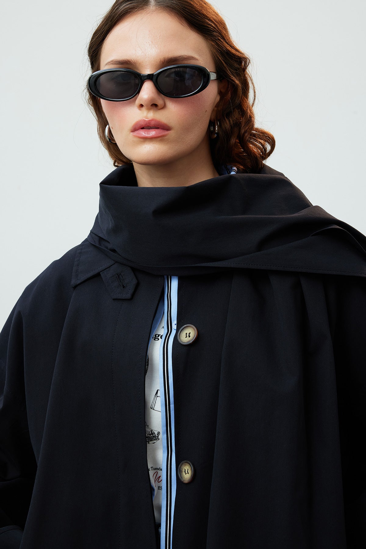 Stockholm Eşarp Detaylı Oversize Trençkot Siyah