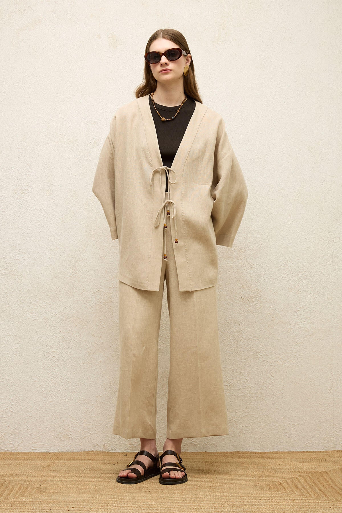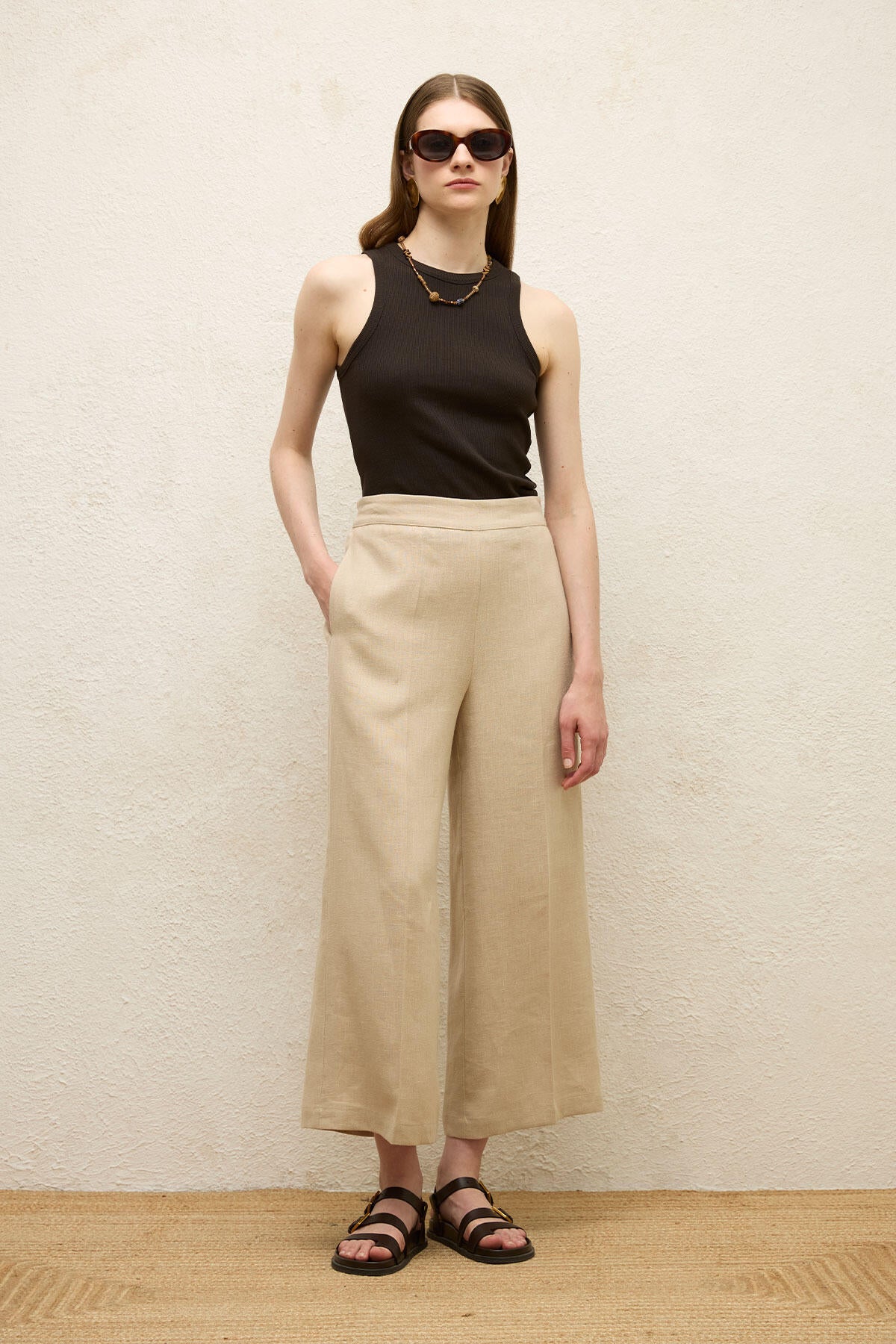 Düz Keten Pantolon Natural
