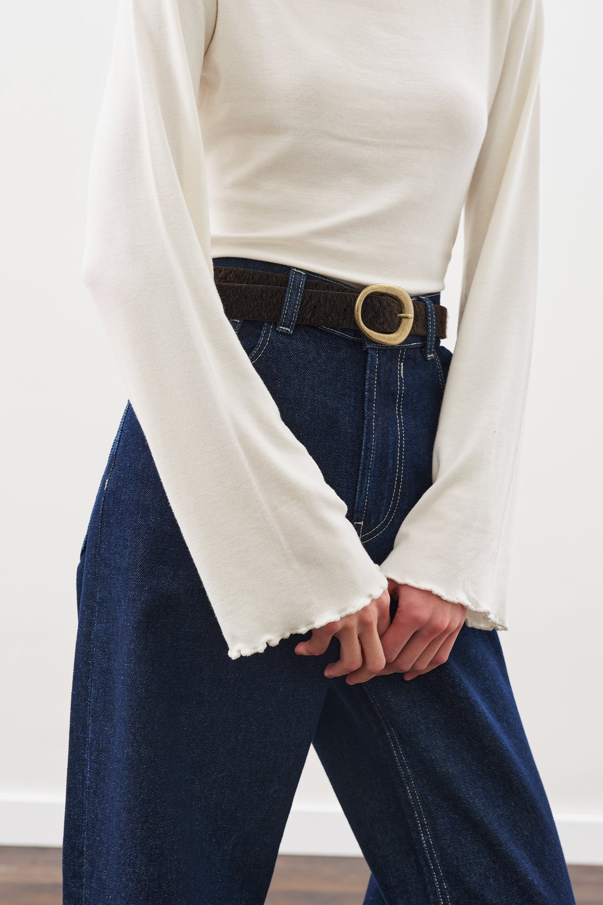 Oval antik kaplamalı tokalı kemer,suni tay tüyü.