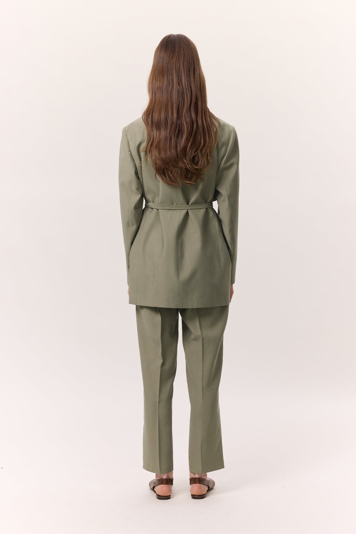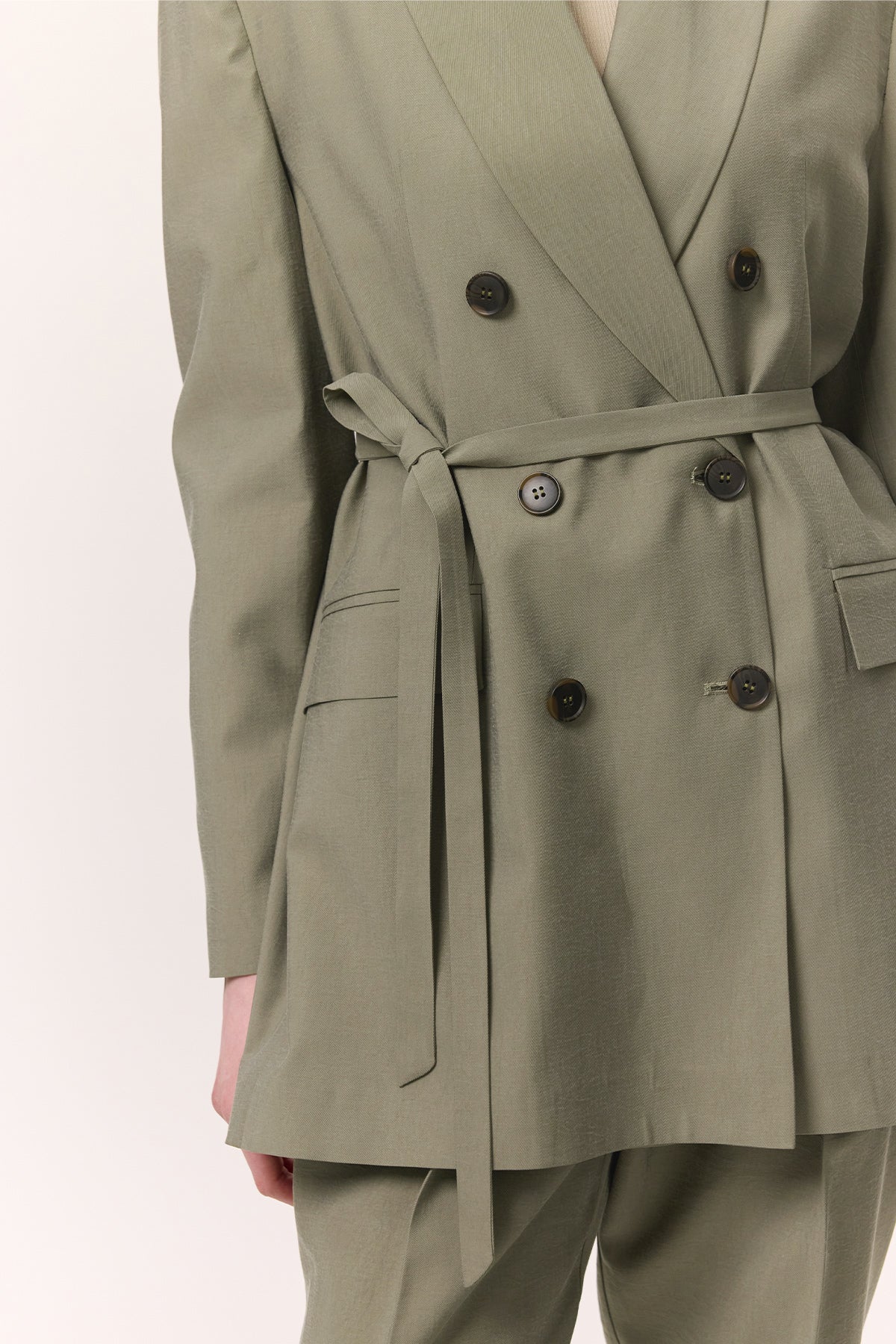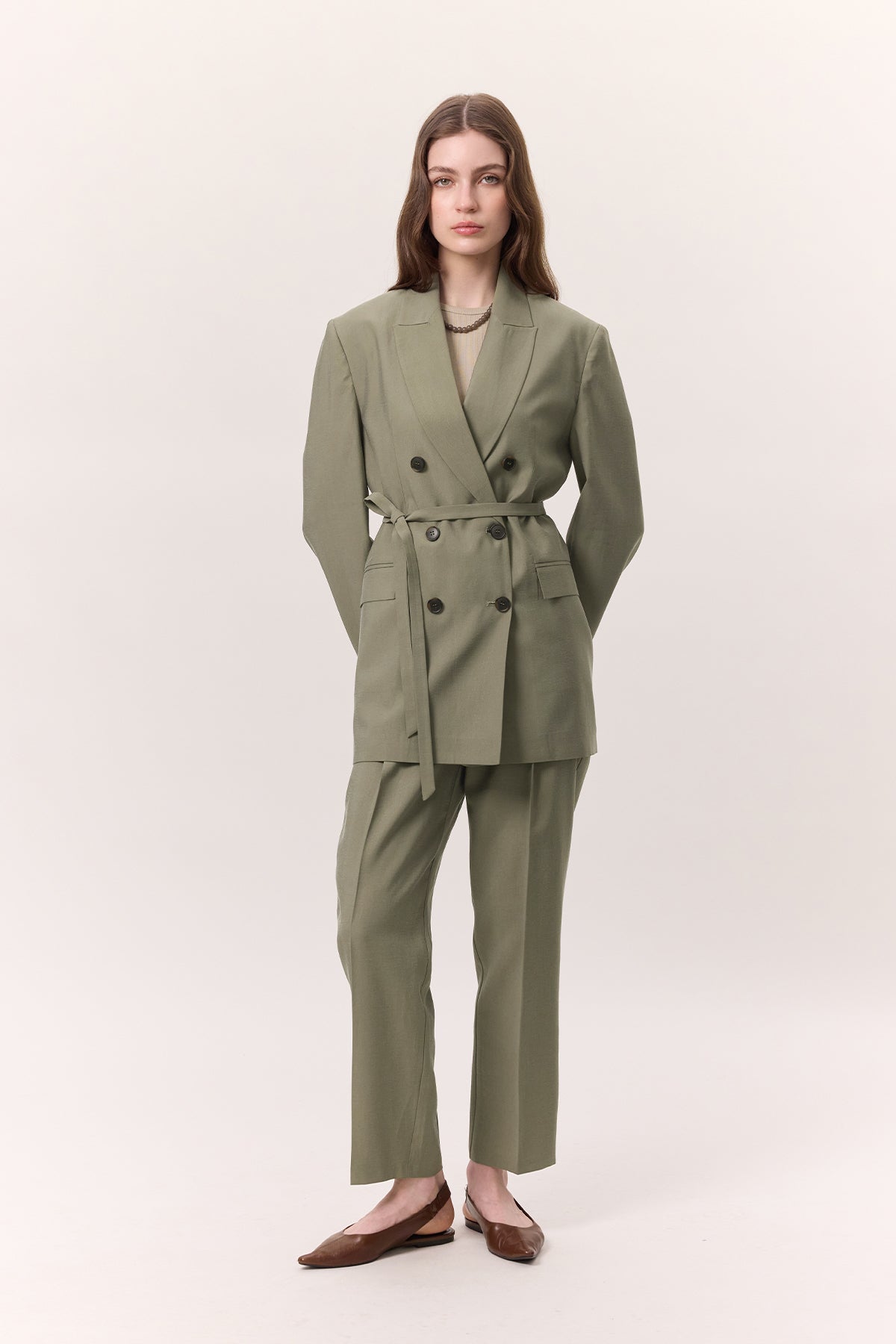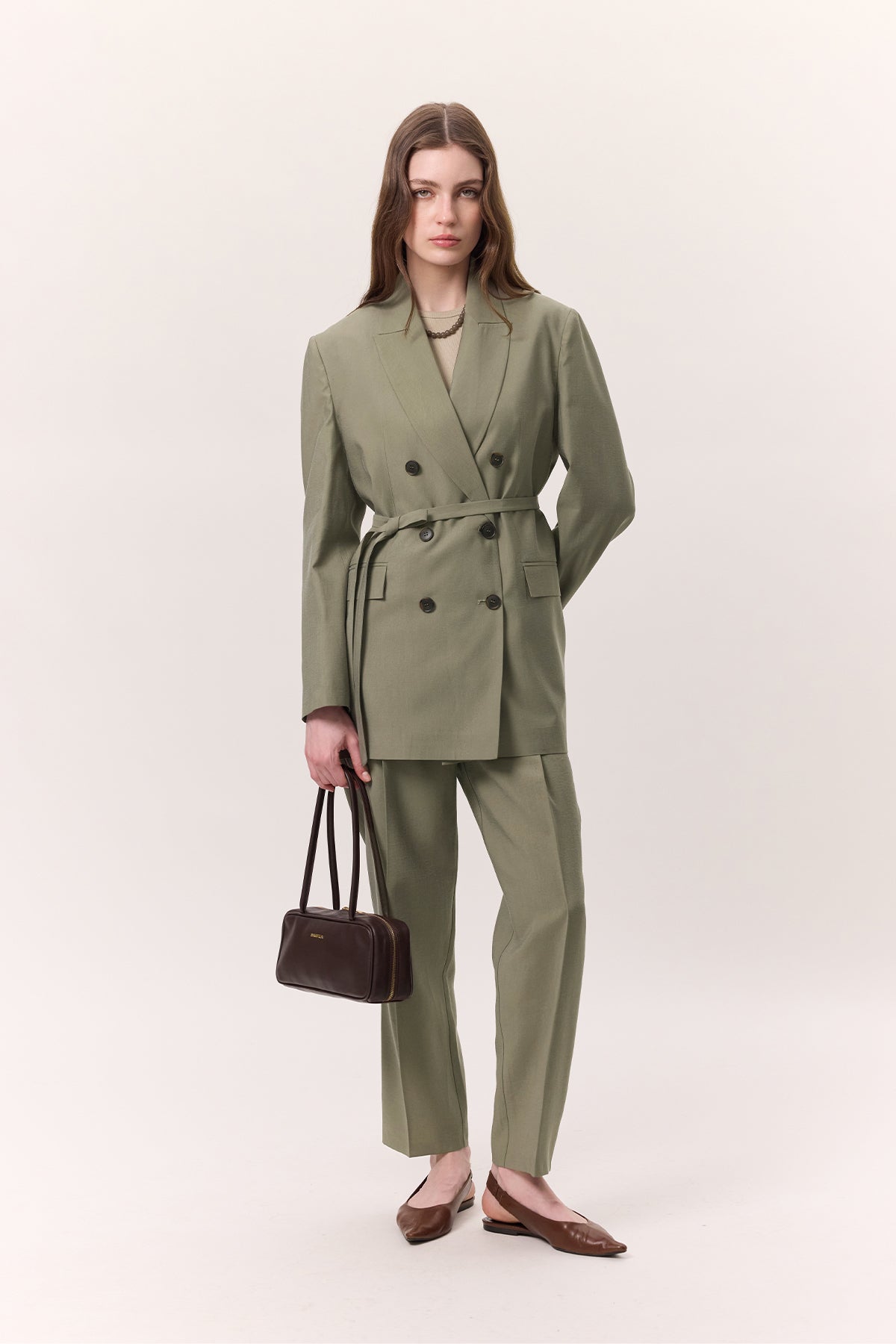 Tencel Kuşaklı Kruvaze Blazer Fıstık Yeşili