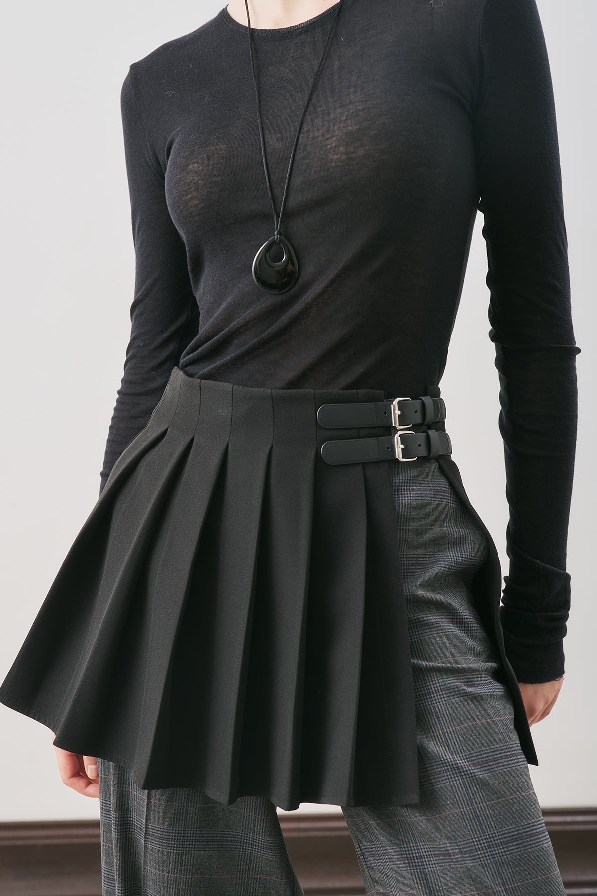 Pleated Skirt With Buckle Detail Black