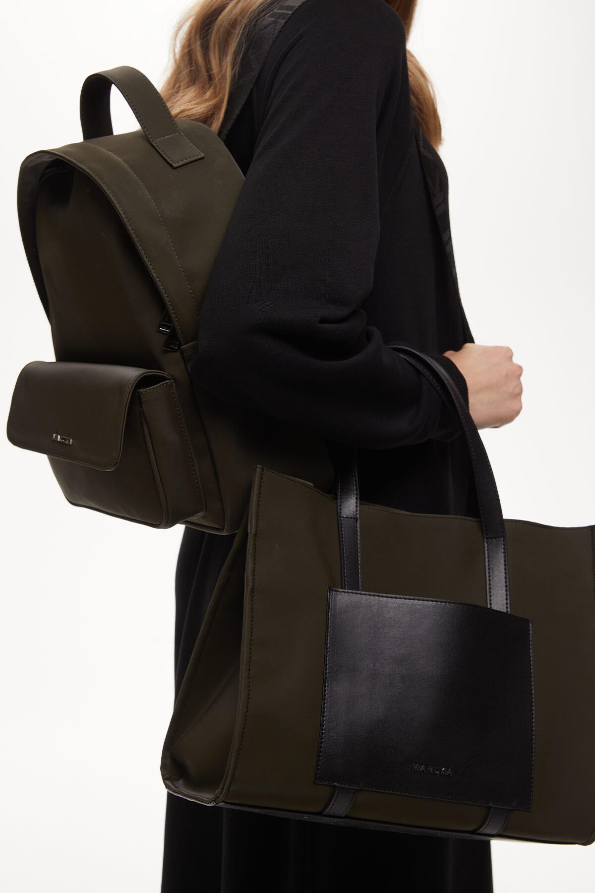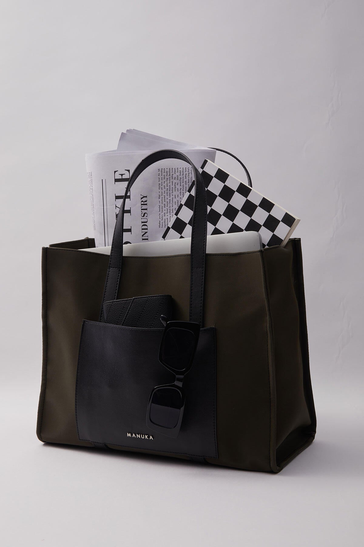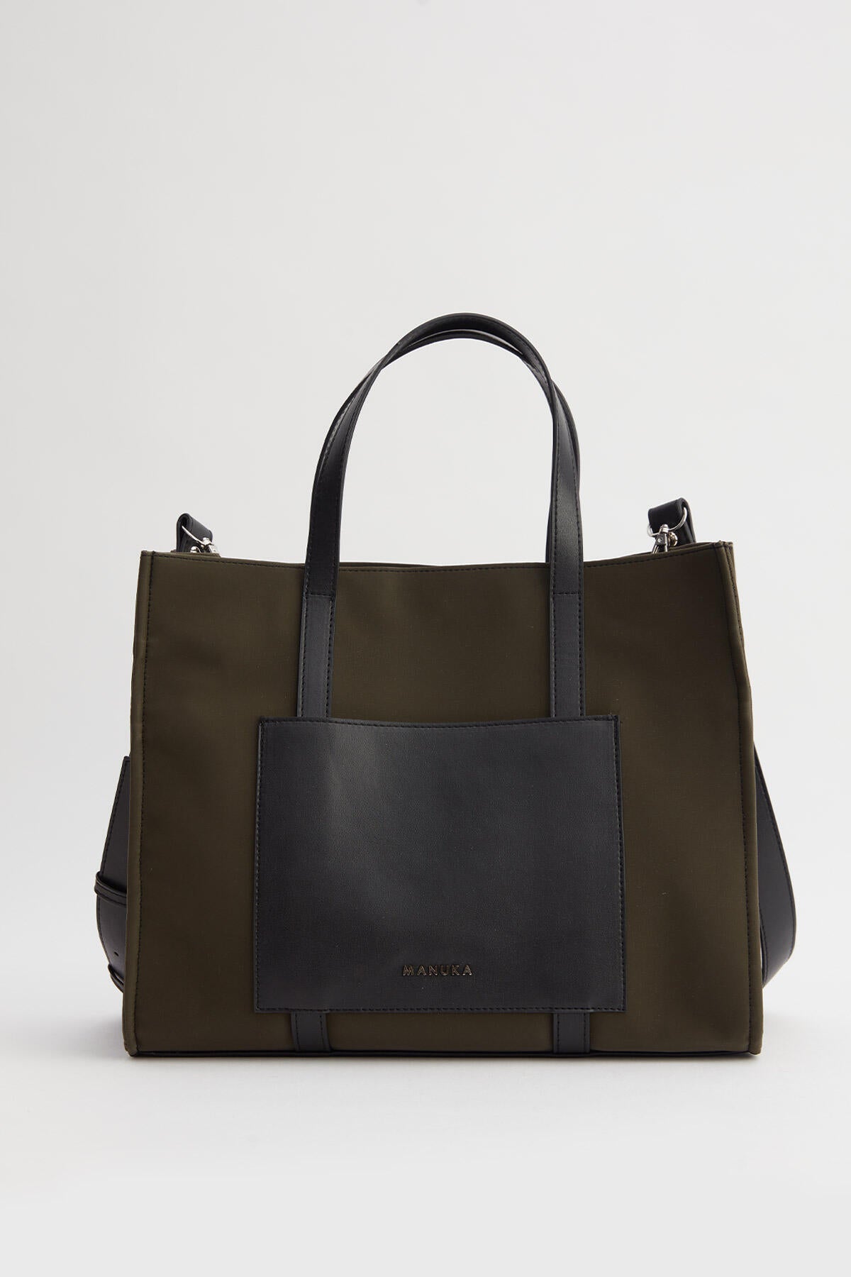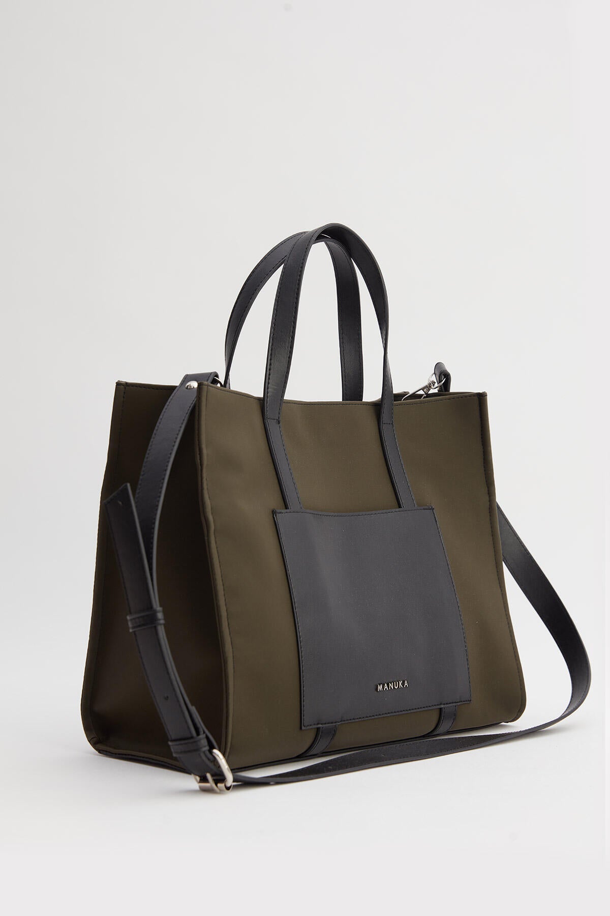 Dayanıklı teknik kumaştan deri detaylarla üretilen bu tote çanta, işlevselliği sofistikelikle birleştiriyor. Çanta hem sağlam bir üst sapa hem de ayarlanabilir omuz askılarına sahip olup, rahatlığınız için birden fazla taşıma seçeneği sunuyor. İçeride, dayanıklılık için astarlanmış geniş bir ana bölme, büyük bir cep ve eşyalarınızı düzenli ve güvenli tutmak için daha küçük bir fermuarlı cep bulacaksınız. Ayrıca, çantanın ön tarafı hem gösteriş hem de işlevsellik katan şık bir deri ceple süslenmiştir. İmzalı Manuka logomuzla kabartılan bu tote çanta, kalite ve stilin bir kanıtıdır. Kullanışlı çıtçıtlı kapatmasıyla, hareket halindeyken temel ihtiyaçlarınıza kolayca erişebilirsiniz.