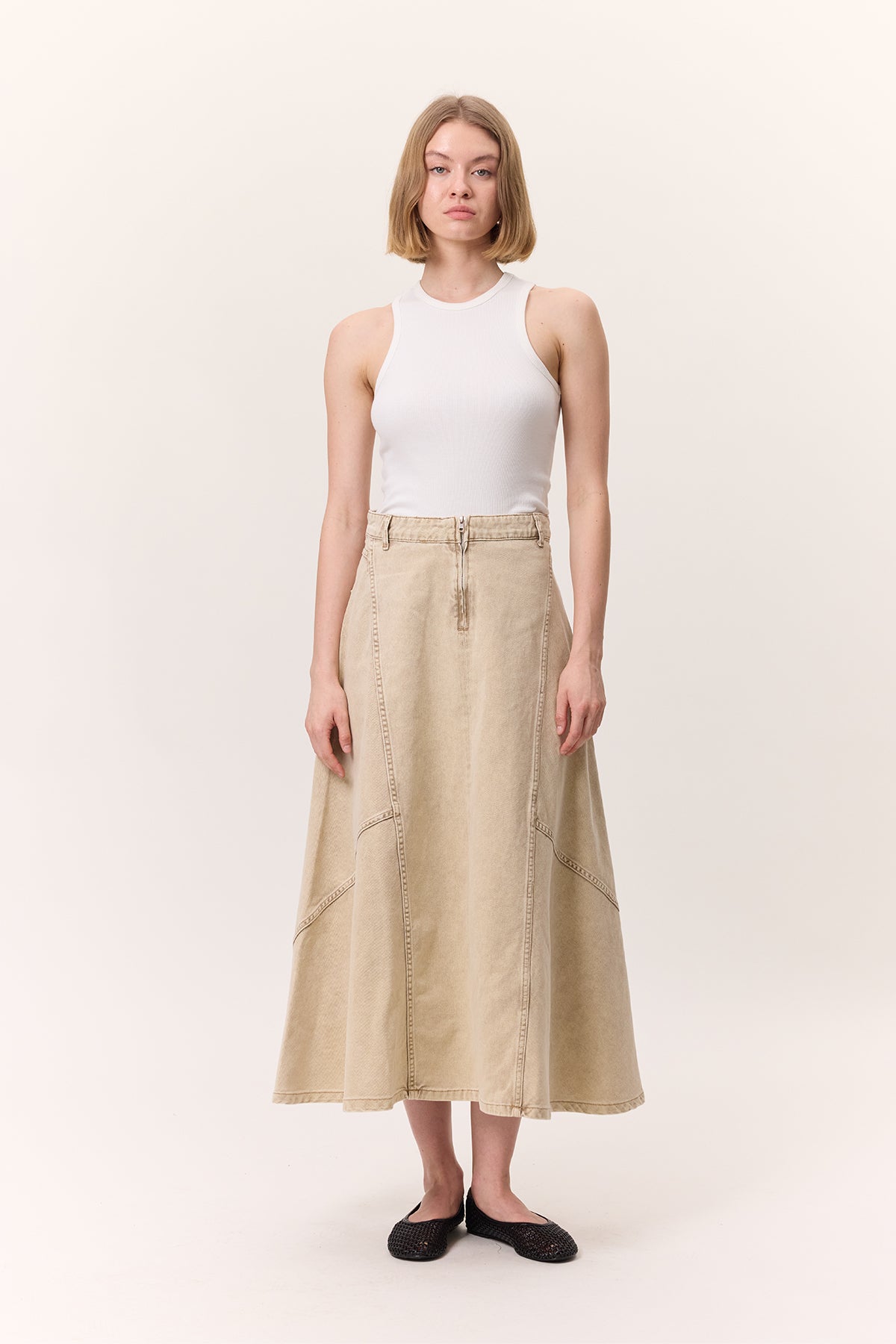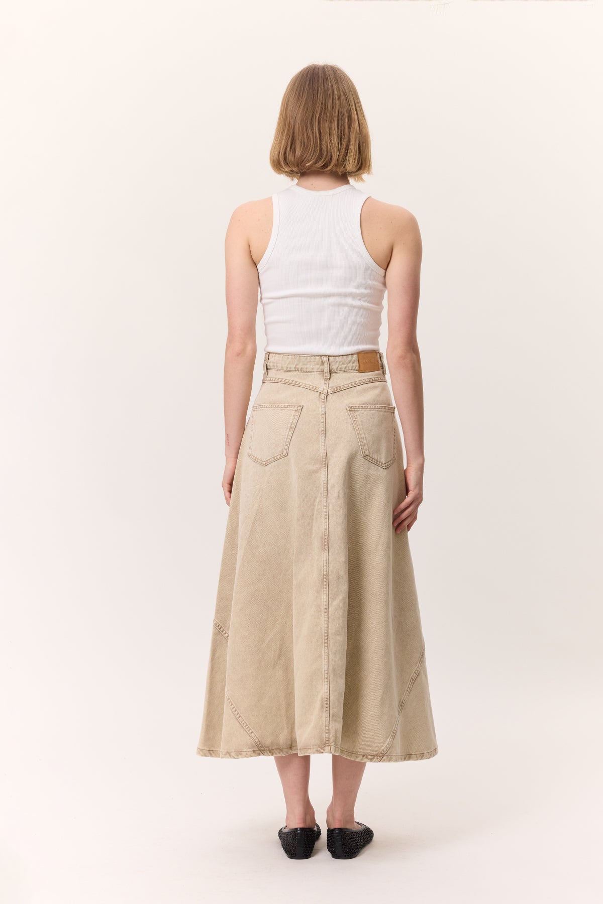 Fırfırlı Kot Etek Deve