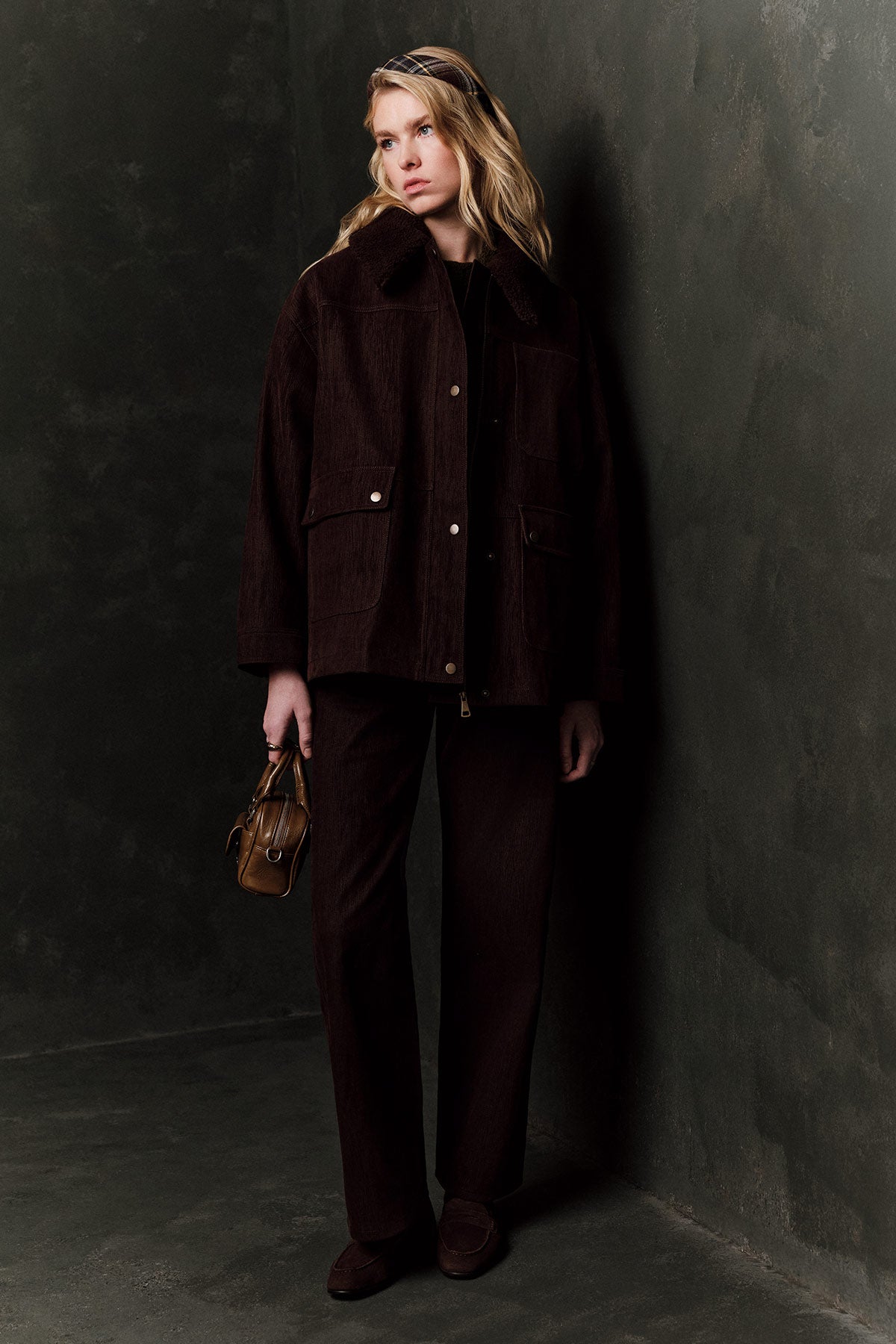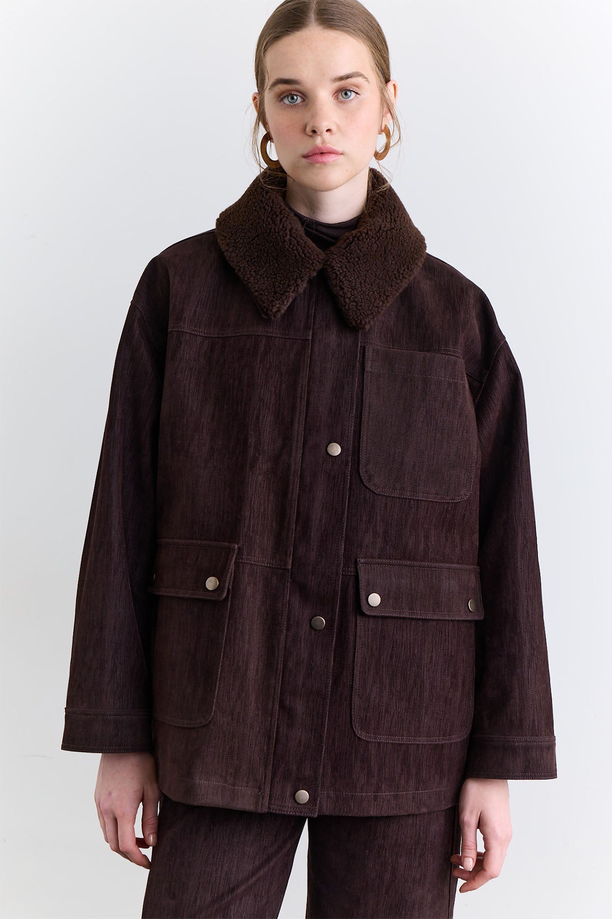 Natural Coat With Fur Collar Brown