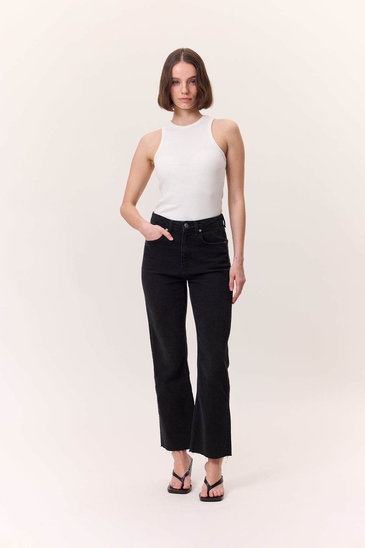 Yüksek Bel Kloş Kot Pantolon Siyah