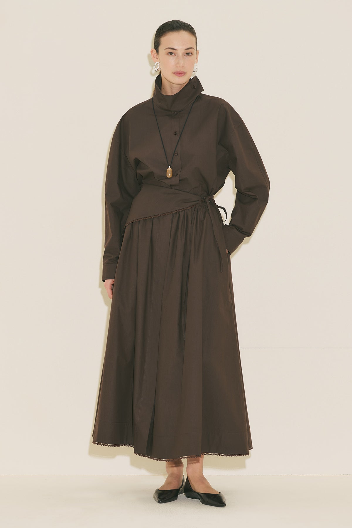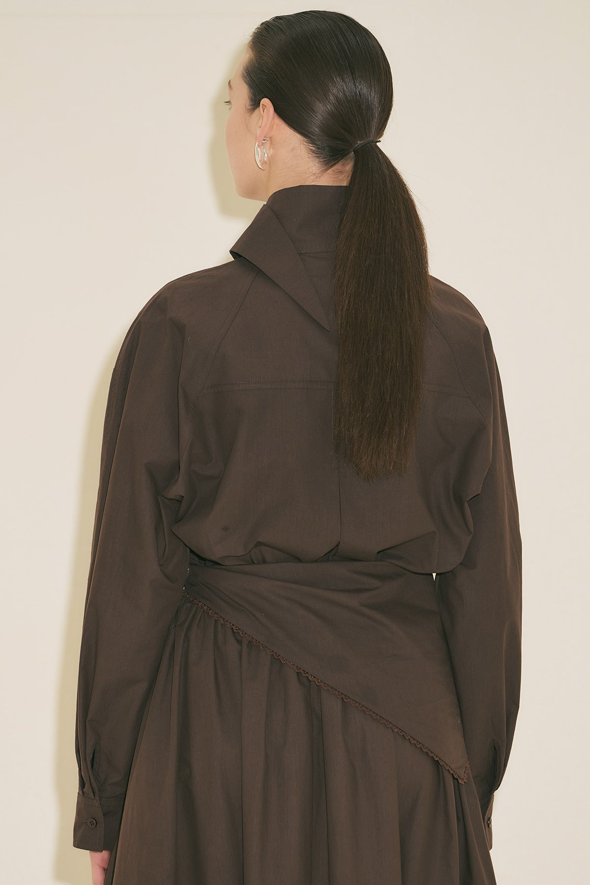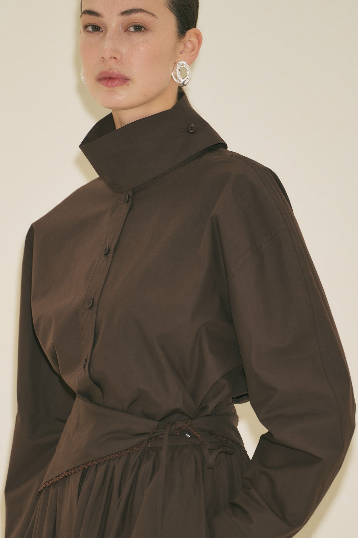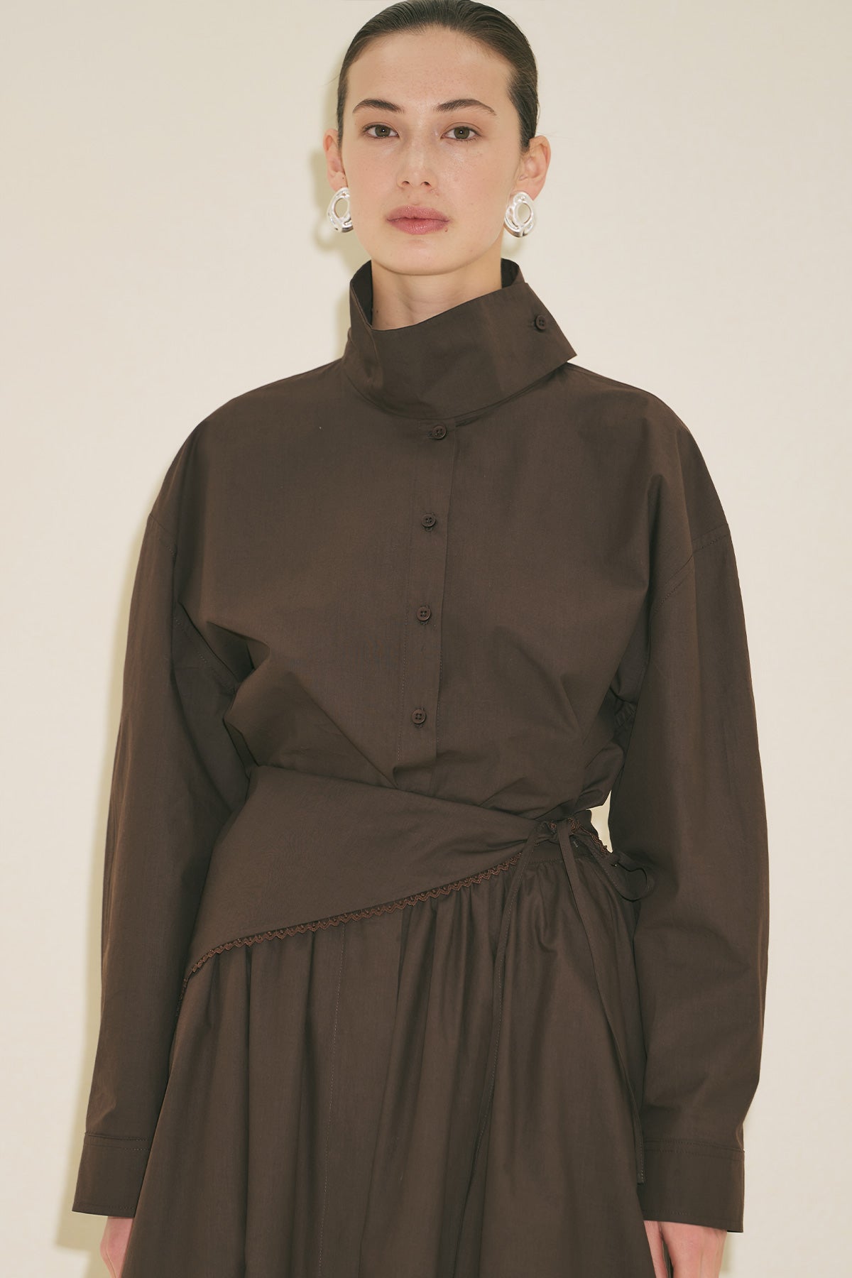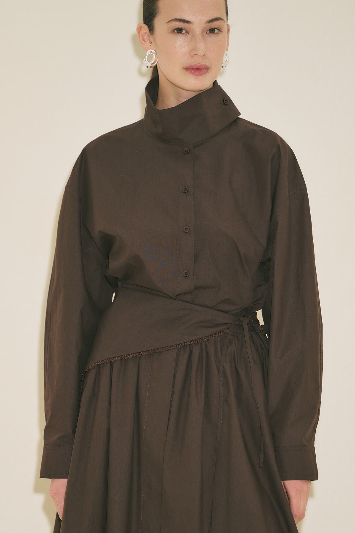High Neck Cropped Shirt Brown